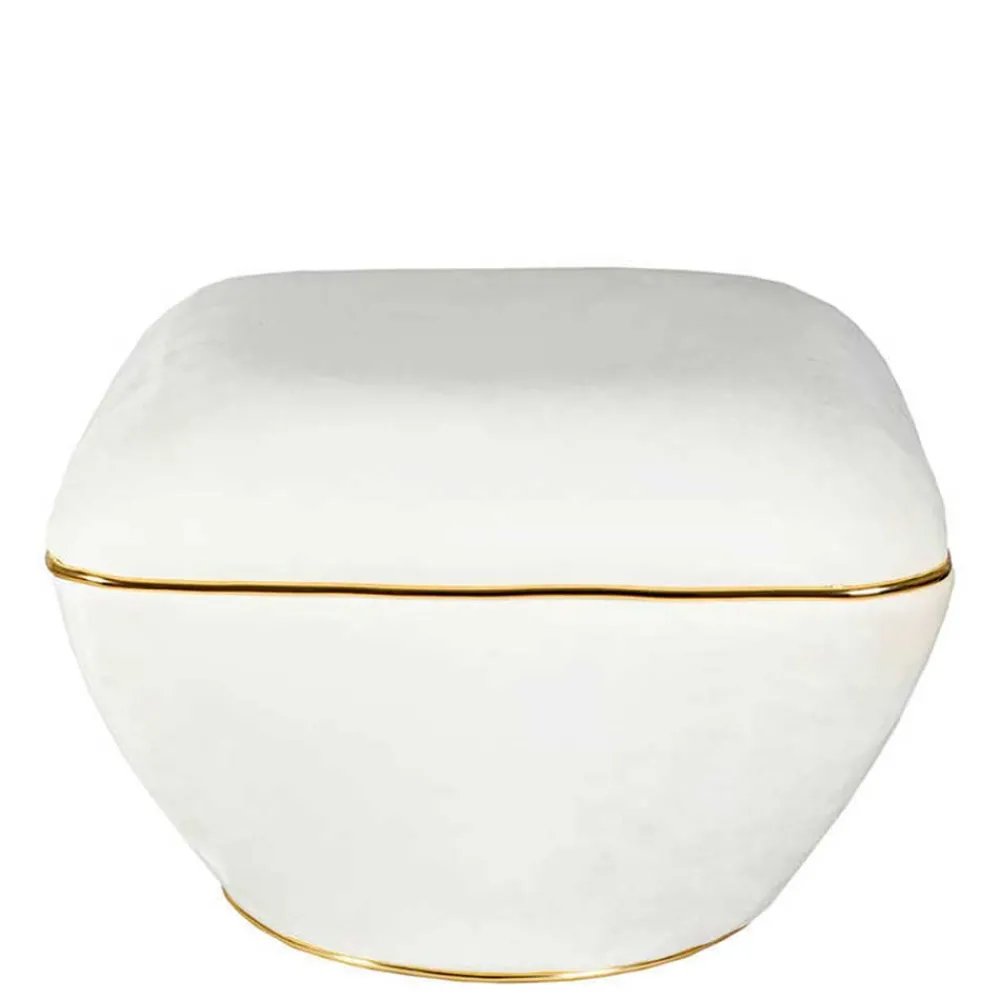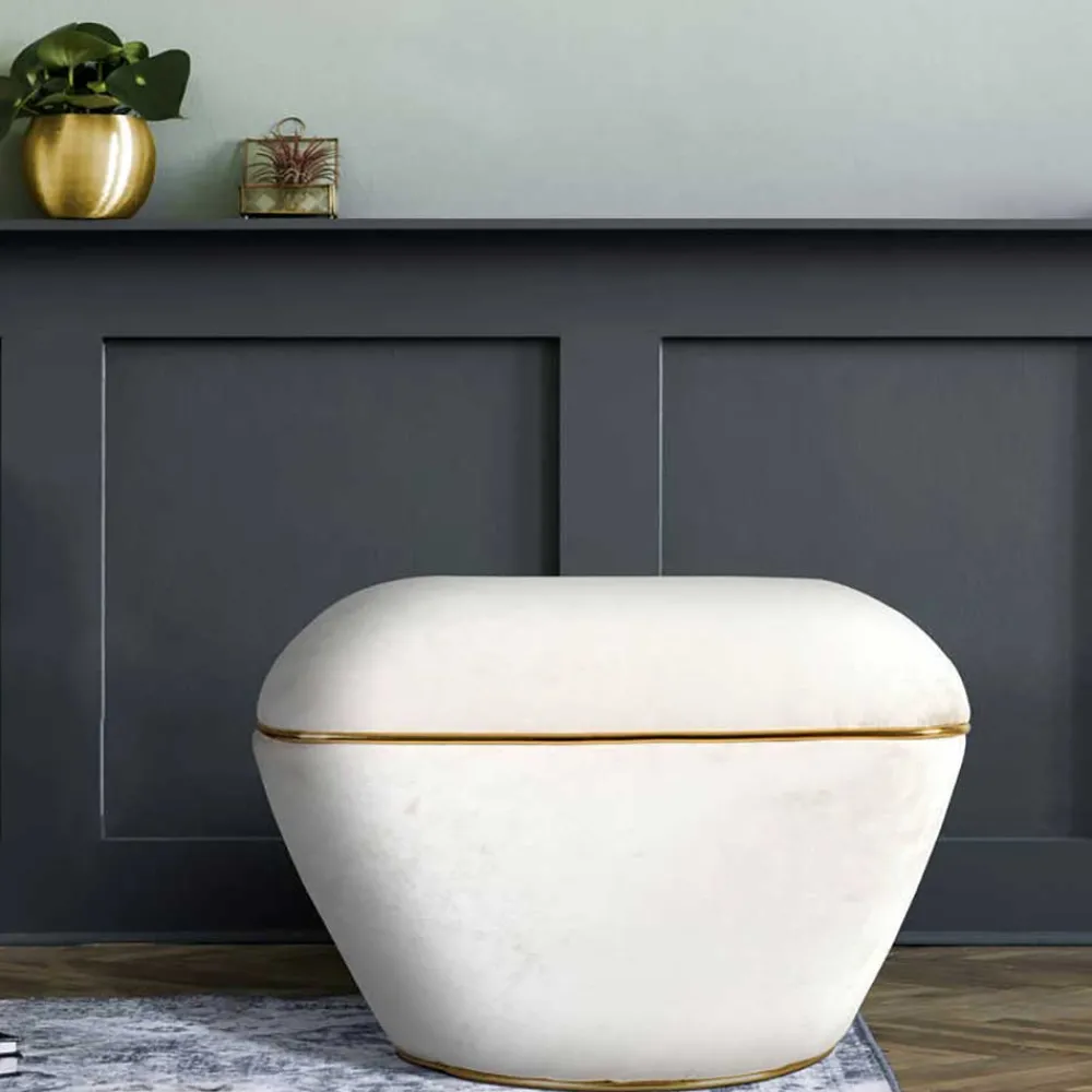 - Vielseitiger Hocker in Cremeweiß und Goldfarben