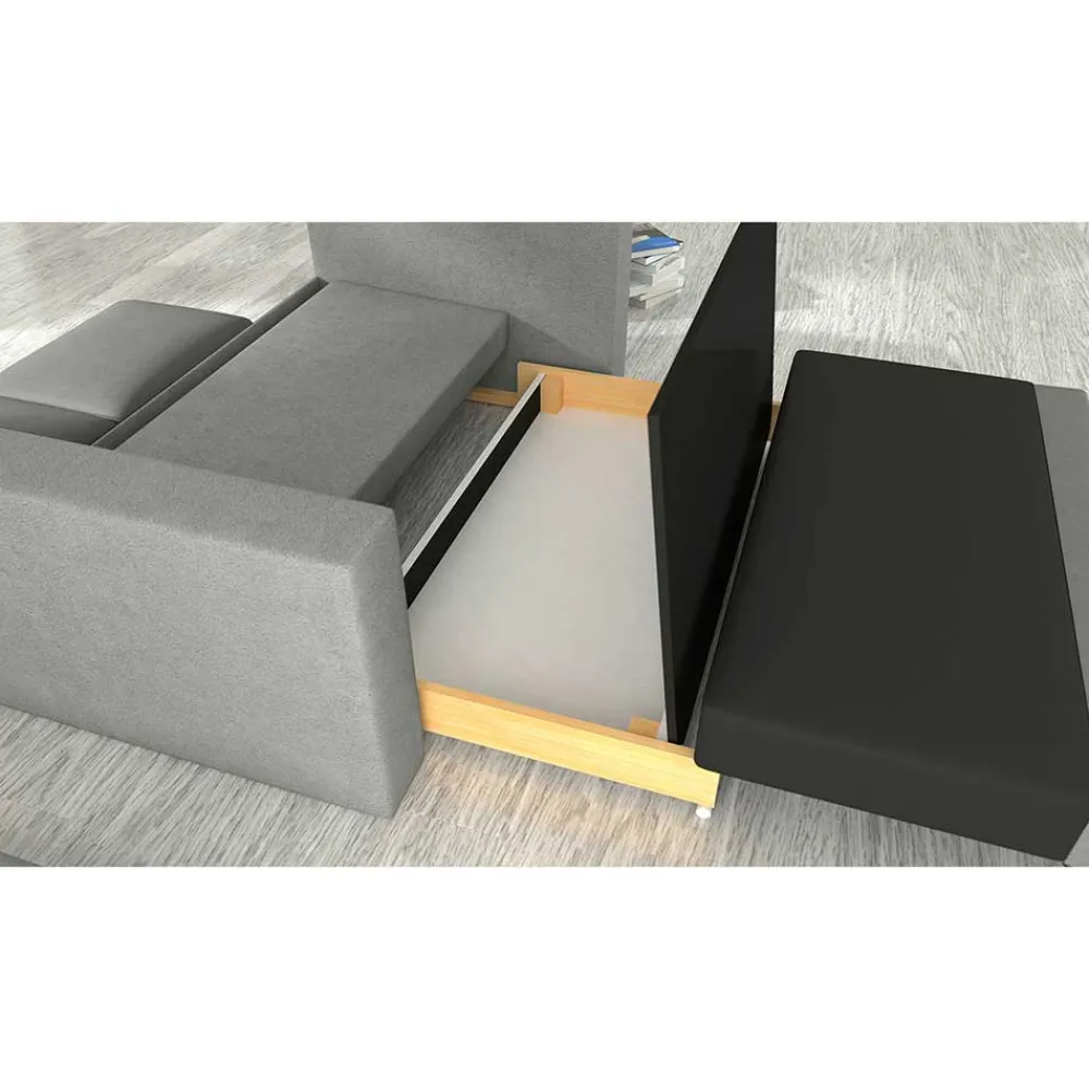 Die Schlafcouch „Ronny“ lässt sich im Handumdrehen in eine großzügige Liegefläche verwandeln. Ziehen Sie einfach die Sitzfläche vor und legen Sie die Rückenlehne flach – schon steht Ihnen eine Liegefläche von 125×200 cm zur Verfügung. Zusätzlich befindet sich unterhalb der Sitzfläche ein praktischer Bettkasten, der Stauraum für Decken, Kissen und andere Utensilien bietet. So können Sie das Sofa tagsüber als gemütliche Sitzgelegenheit nutzen und es nachts ganz einfach in ein komfortables Bett verwandeln.