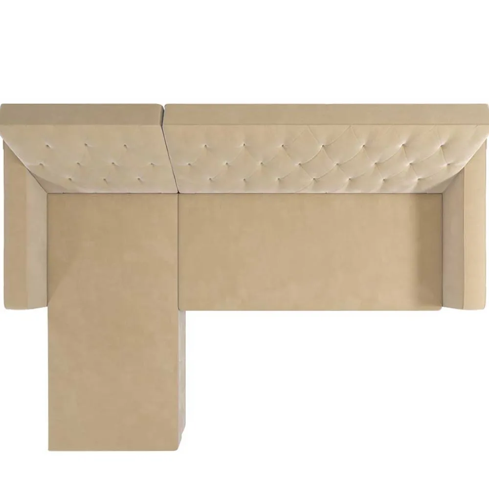 - Pflegeleichter Samtbezug aus 100 % Polyester mit tiefen Punktsteppungen und kapitonierten Nähten