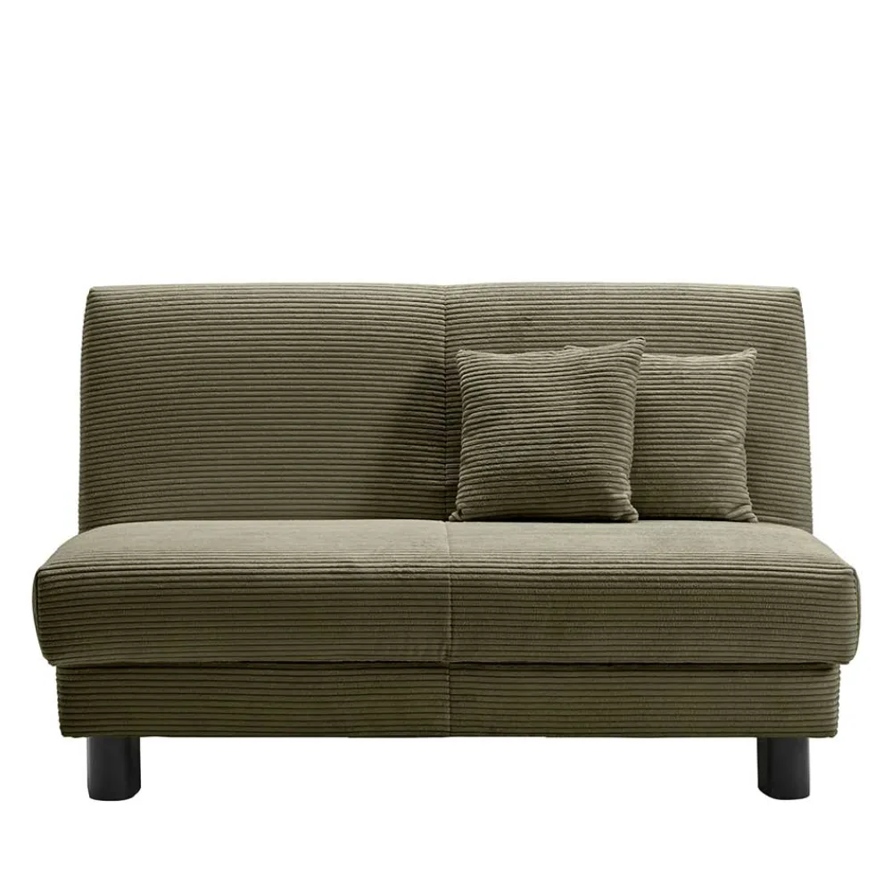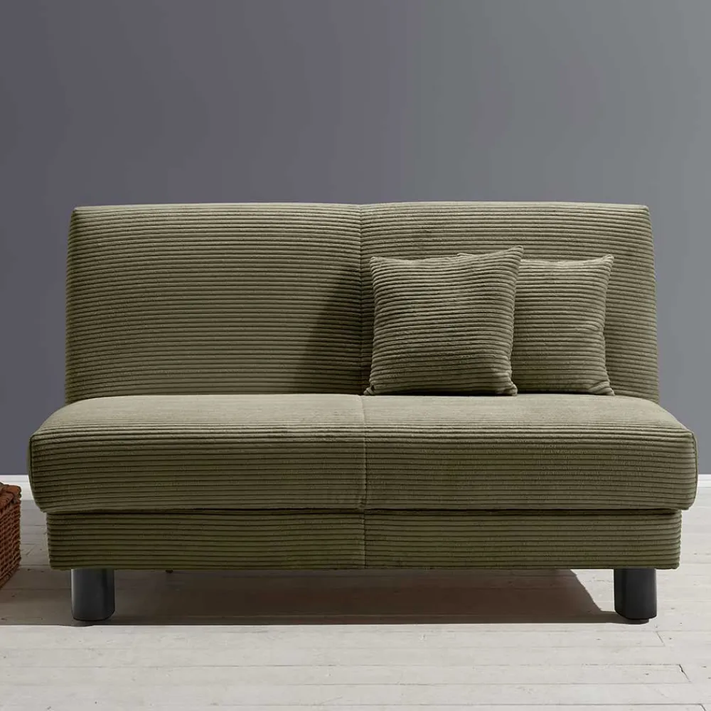 Die „Lubines“ ist frei im Raum stellbar, da der Rücken ebenfalls mit dem Cord-Bezug versehen ist. Dies ermöglicht eine flexible Platzierung im Raum. Das schmale Design ohne Armlehnen und die beiden mitgelieferten Kissen (40×40 cm) aus dem gleichen hochwertigen Cord-Material machen die Couch besonders vielseitig. Ein weiteres Highlight ist die einfache Verwandlung in eine Schlafgelegenheit. Mit wenigen Handgriffen und durch vier integrierte Rollen lässt sich die Couch nach vorne herausziehen und in ein bequemes Gästebett verwandeln. Die Liegefläche beträgt dabei großzügige 140×200 cm und bietet ausreichend Platz für Übernachtungsgäste.