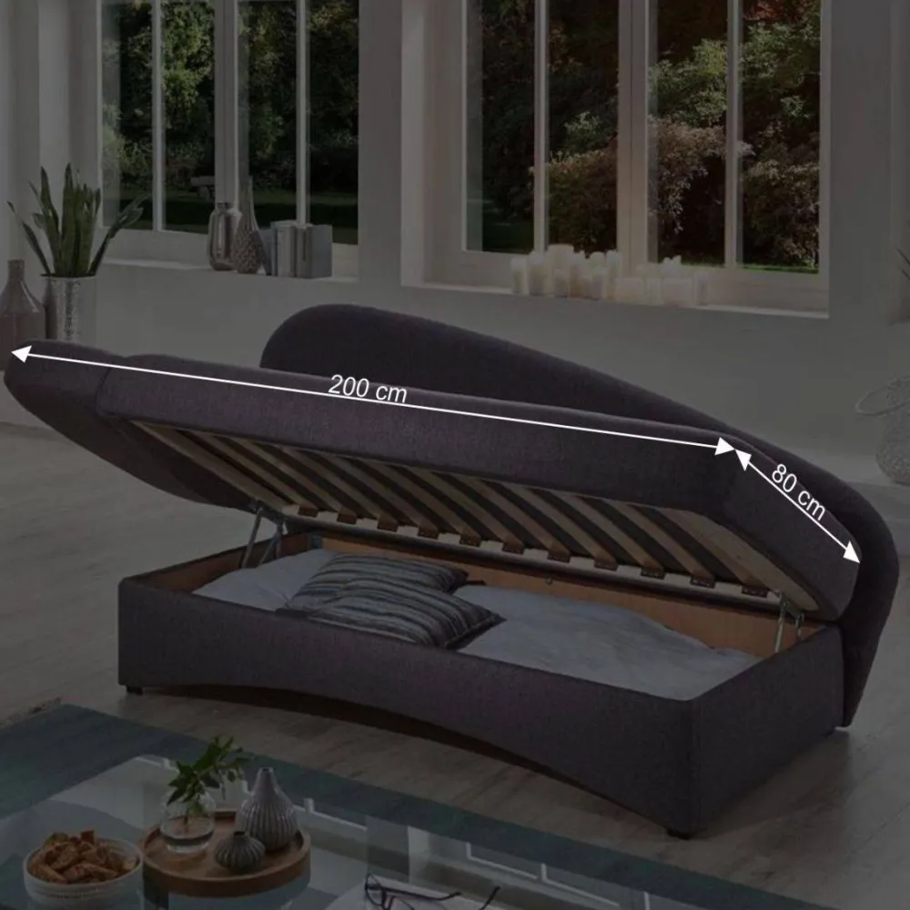 Das Daybed „Perfect“ ist nicht nur optisch ansprechend, sondern auch äußerst funktional. Die 8-fach verstellbare Armlehne auf der linken Seite ermöglicht es Ihnen, die Sitzposition nach Ihren Wünschen anzupassen. Die Sitz- und Liegehöhe beträgt ca. 44 cm, und die großzügige Sitzbreite von etwa 153 cm bietet ausreichend Platz für entspannte Stunden. Wenn Sie Gäste erwarten, verwandelt sich dieses Daybed im Handumdrehen in ein komfortables Bett mit einer Liegefläche von ca. 80×200 cm. Der Bettkasten, der von vorne zu öffnen ist, bietet zusätzlichen Stauraum und ist hygienisch innenbelüftet.