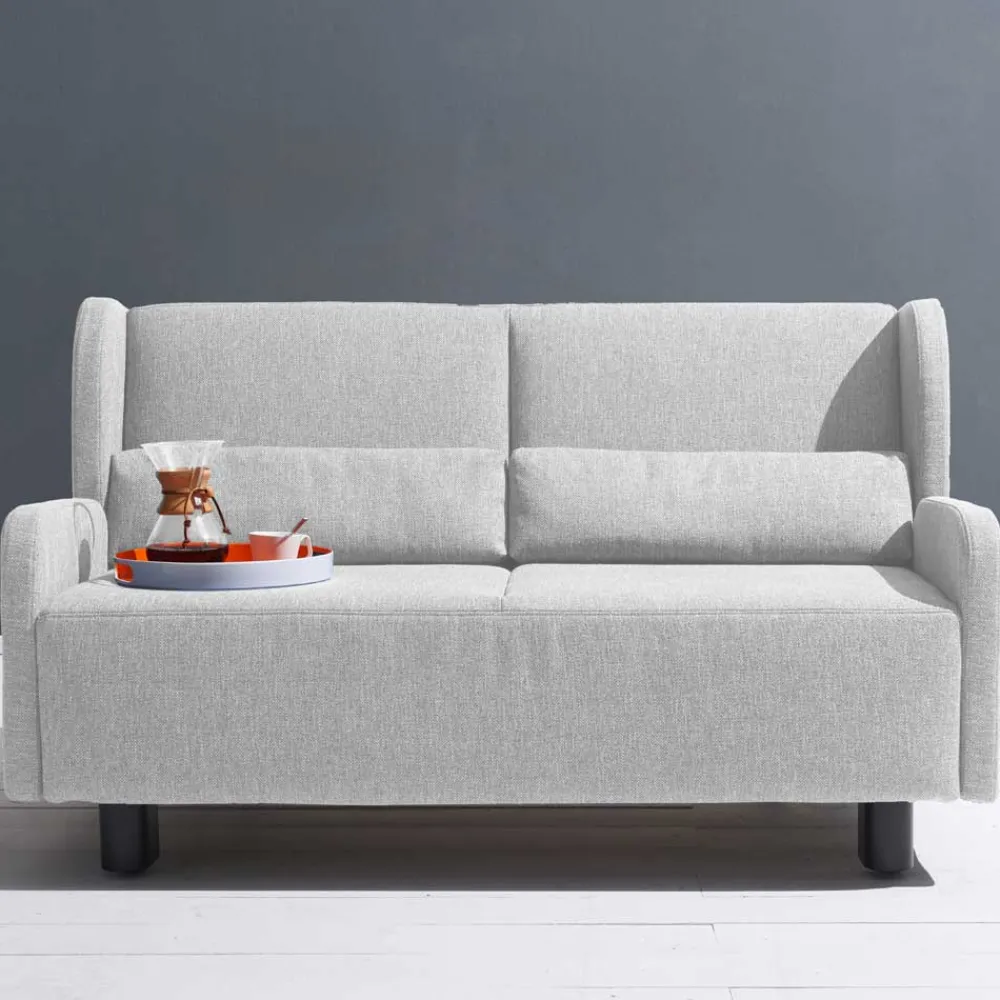 Das Faltsofa „Laos“ zeichnet sich durch seine niedrigen Armlehnen und die formschöne Lehne mit Ohren aus, welche ihm einen einzigartigen Charme verleihen. Das standsichere Vierfuß-Metallgestell in Schwarz sorgt für einen angenehmen optischen Kontrast zum hellgrauen Bezugsstoff sowie maximale Stabilität, während die Faltfunktion durch zwei zusätzliche Stützen unterstützt wird. So lässt sich das Sofa mit nur wenigen Handgriffen in ein komfortables Schlafsofa verwandeln. Die Sitz- und Liegehöhe beträgt ca. 40 cm, und je nach ausgewählter Variante beträgt die Liegefläche des Sofas ca. 120/140/155/180×200 cm. Eine solide Lattenrostunterfederung garantiert Ihnen einen erholsamen Schlaf. Die maximale Belastbarkeit pro Sitz- und Liegefläche beträgt 120 kg.