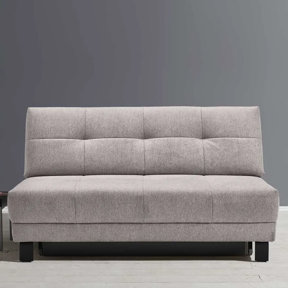Das Schlafsofa „Bino“ ist ohne Armlehnen gestaltet und überzeugt durch sein schmales Design. Der Rücken ist echt bezogen, sodass es frei im Raum platziert werden kann. Mit wenigen Handgriffen lässt sich das Sofa in eine komfortable Schlafgelegenheit verwandeln, die eine Liegefläche von ca. 140/160 x 200 cm bietet – ideal für Übernachtungsgäste. Obwohl es nicht als Dauerschlafplatz gedacht ist, bietet es eine maximale Belastbarkeit von 120 kg je Liegefläche und einen praktischen, integrierten Bettkasten für zusätzlichen Stauraum.