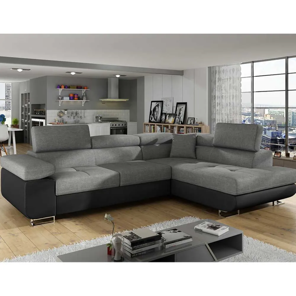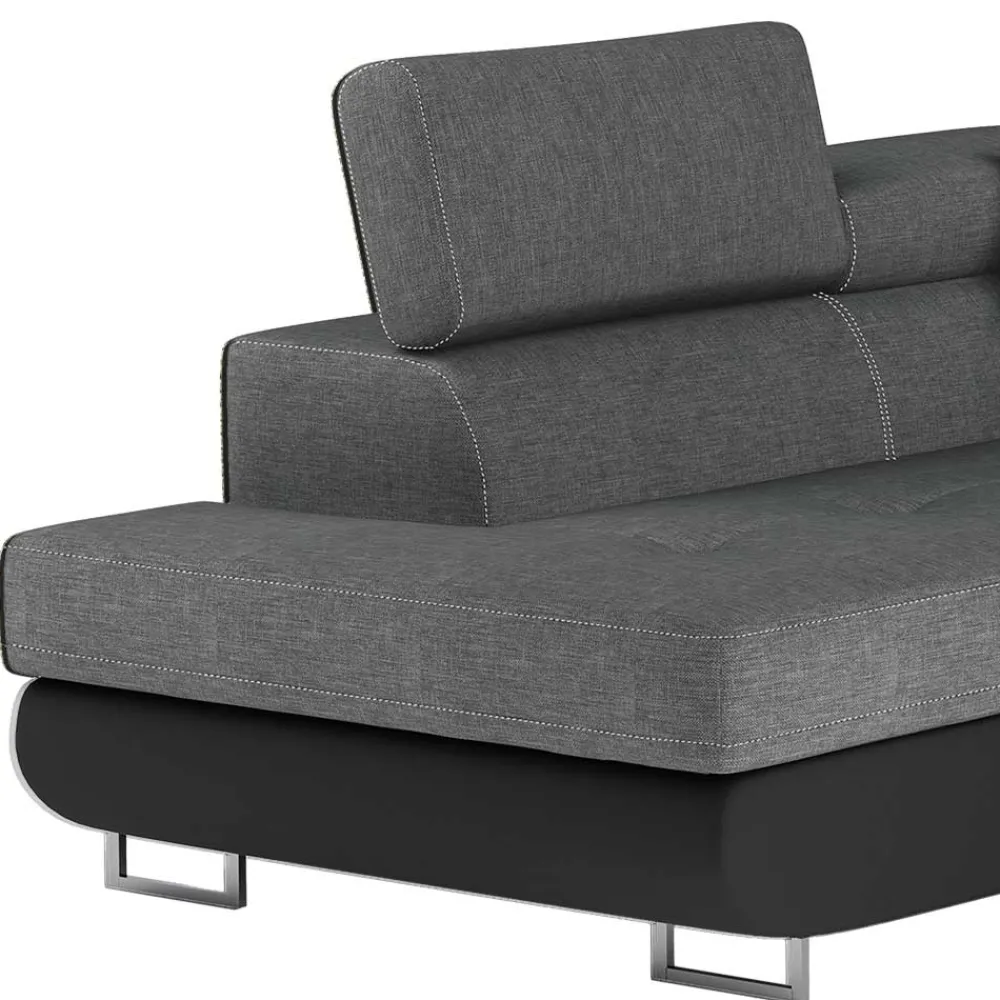 Das L-Schlafsofa „Vichada“ vereint edles Design mit praktischen Funktionen. Der dezente Grauton des strapazierfähigen Webstoffs harmoniert perfekt mit dem tiefschwarzen Kunstleder, wodurch ein zeitgemäßes Farbspiel entsteht, das Ihre Einrichtung auf stilvolle Weise ergänzt. Mit „Vichada“ verleihen Sie Ihrem Wohnzimmer einen modernen und zugleich gemütlichen Charakter.