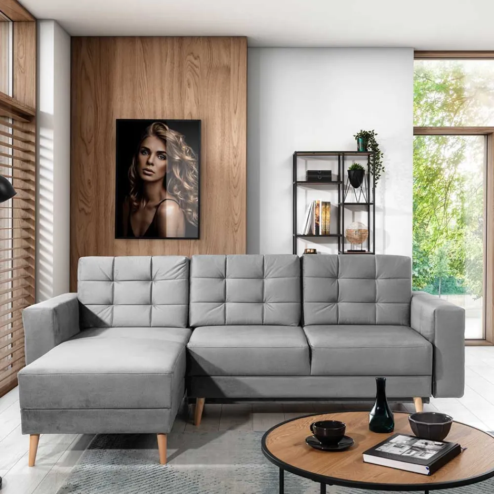 Dieses multifunktionale Sofa ist mit einer Auszugfunktion ausgestattet, die es ermöglicht, die Sitzfläche vorzuziehen und die Rückenlehne zu einer Schlaffläche umzufalten. Perfekt für Gäste oder als zusätzliche Liegefläche. Die integrierte Ottomane kann sowohl links als auch rechts montiert werden, was „Pleasure“ zu einer idealen Lösung für jede Raumkonfiguration macht. Nicht zu vergessen der praktische Bettkasten, der zusätzlichen Stauraum bietet.