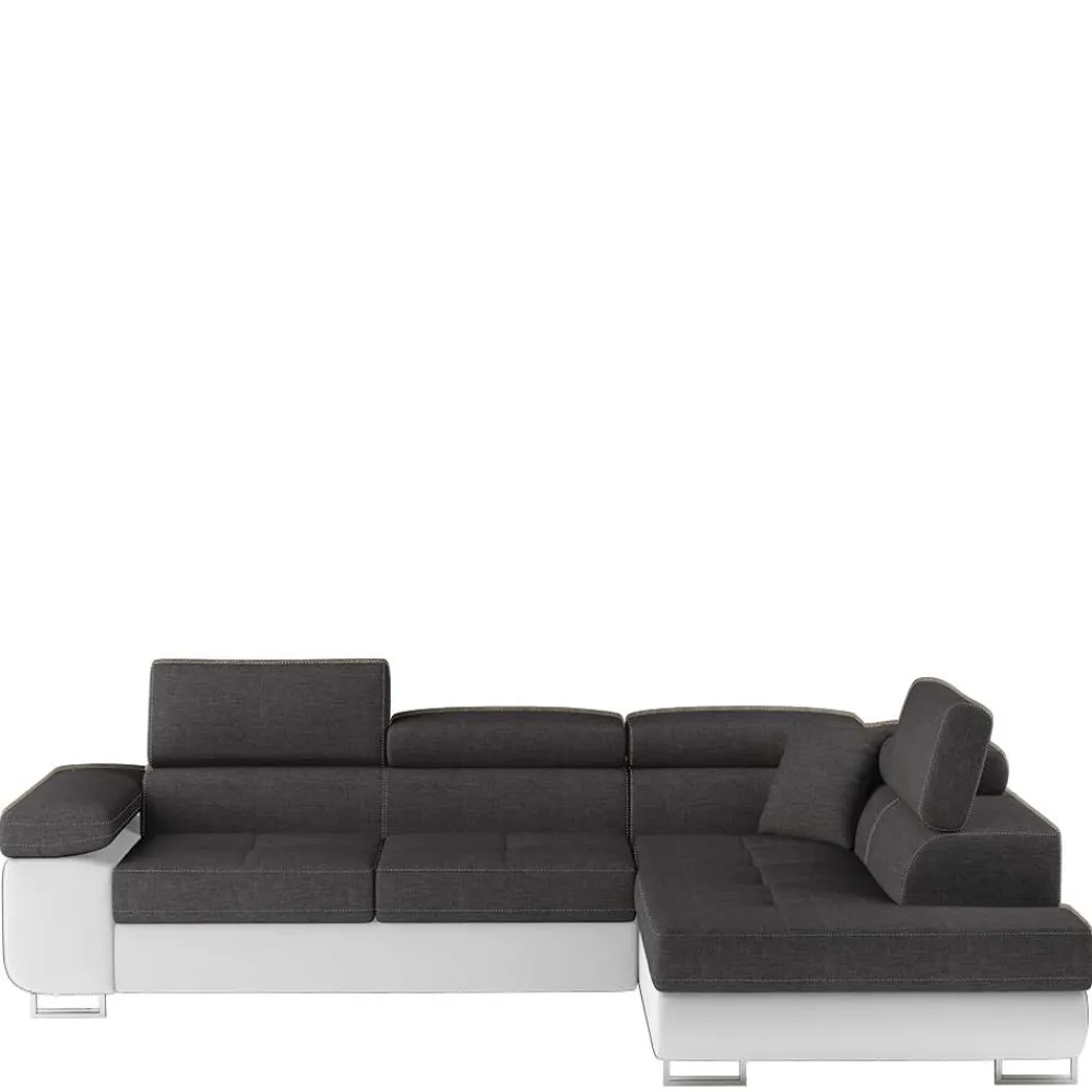 - Bequemes Ecksofa in Dunkelgrau und Weiß