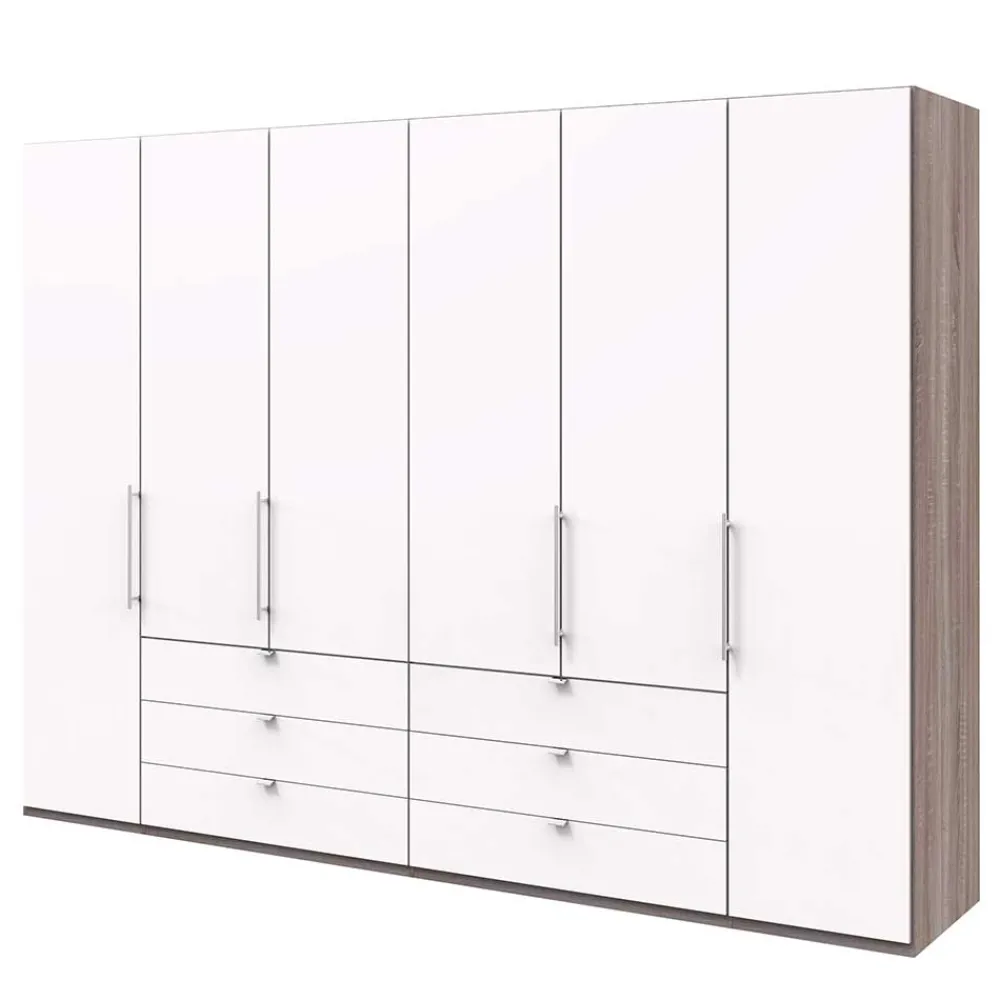 - Beeindruckender Kleiderschrank in Weiß und Eiche Trüffelfarben