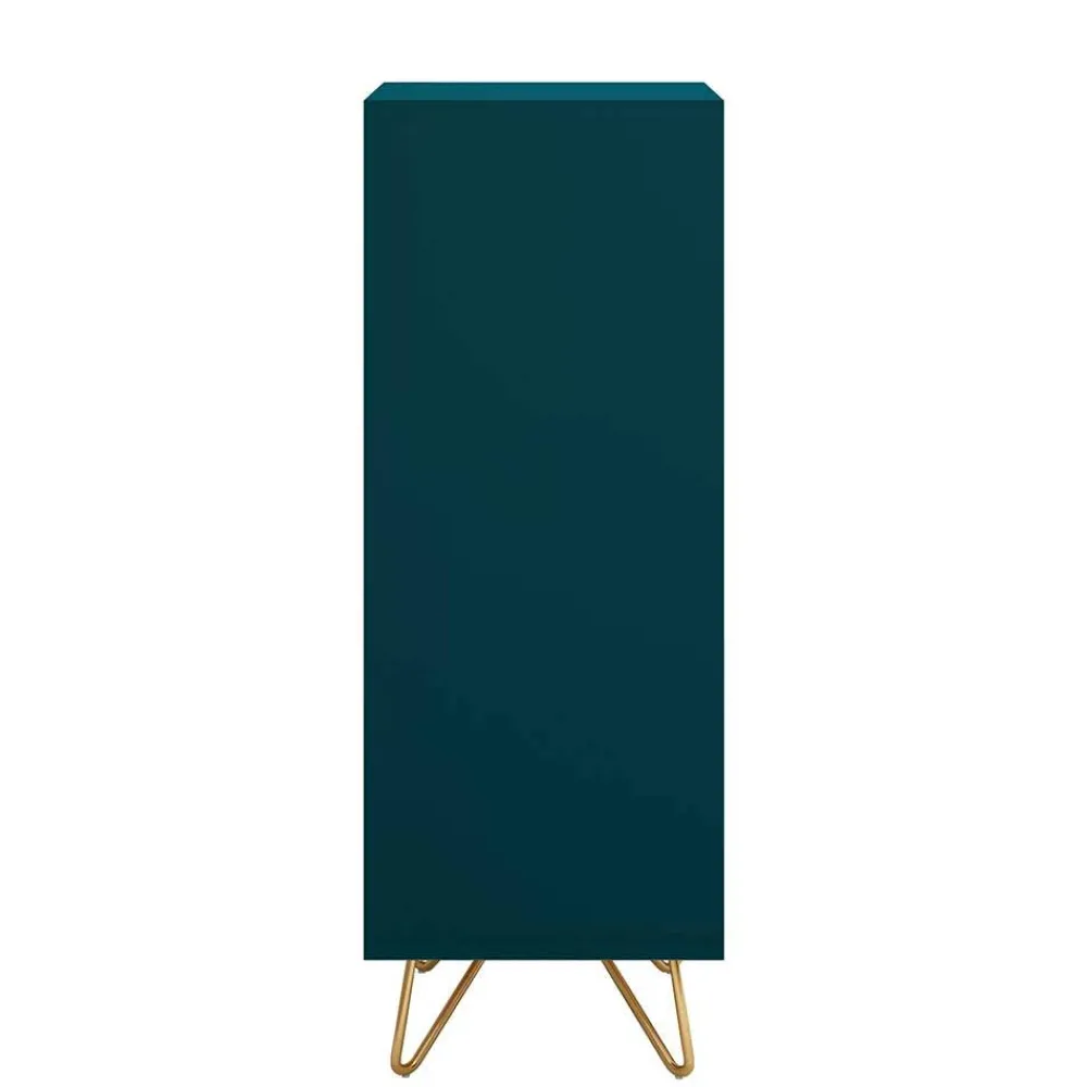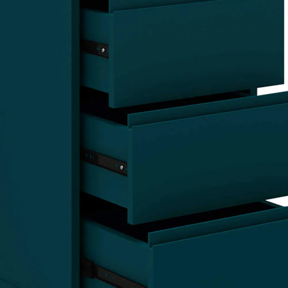 Gefertigt aus hochwertigem MDF und sorgfältig lackiert in edlem Petrol, bietet diese Hochkommode eine samtig-glatte Oberfläche, die beim Darüberstreichen sofort den Unterschied spüren lässt. MDF – mitteldichte Faserplatte – überzeugt nicht nur durch seine außergewöhnliche Stabilität und Langlebigkeit, sondern auch durch seine feine, homogene Struktur. Das Ergebnis: eine makellose, ebenmäßige Oberfläche, die nicht nur aussieht wie ein Designerstück – sie fühlt sich auch genauso an. Die Lackierung verleiht dem Möbel einen dezenten Glanz, der Luxus und Zurückhaltung perfekt miteinander vereint.