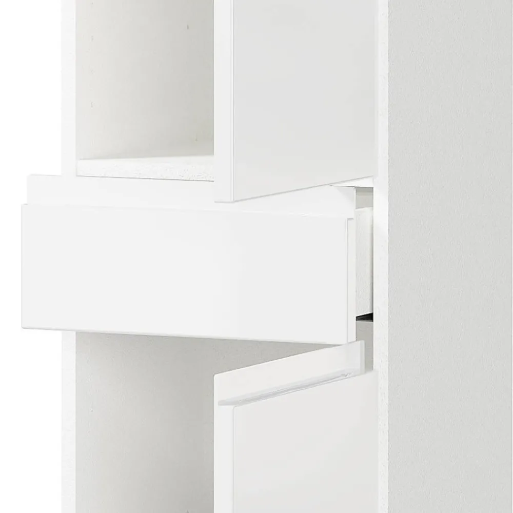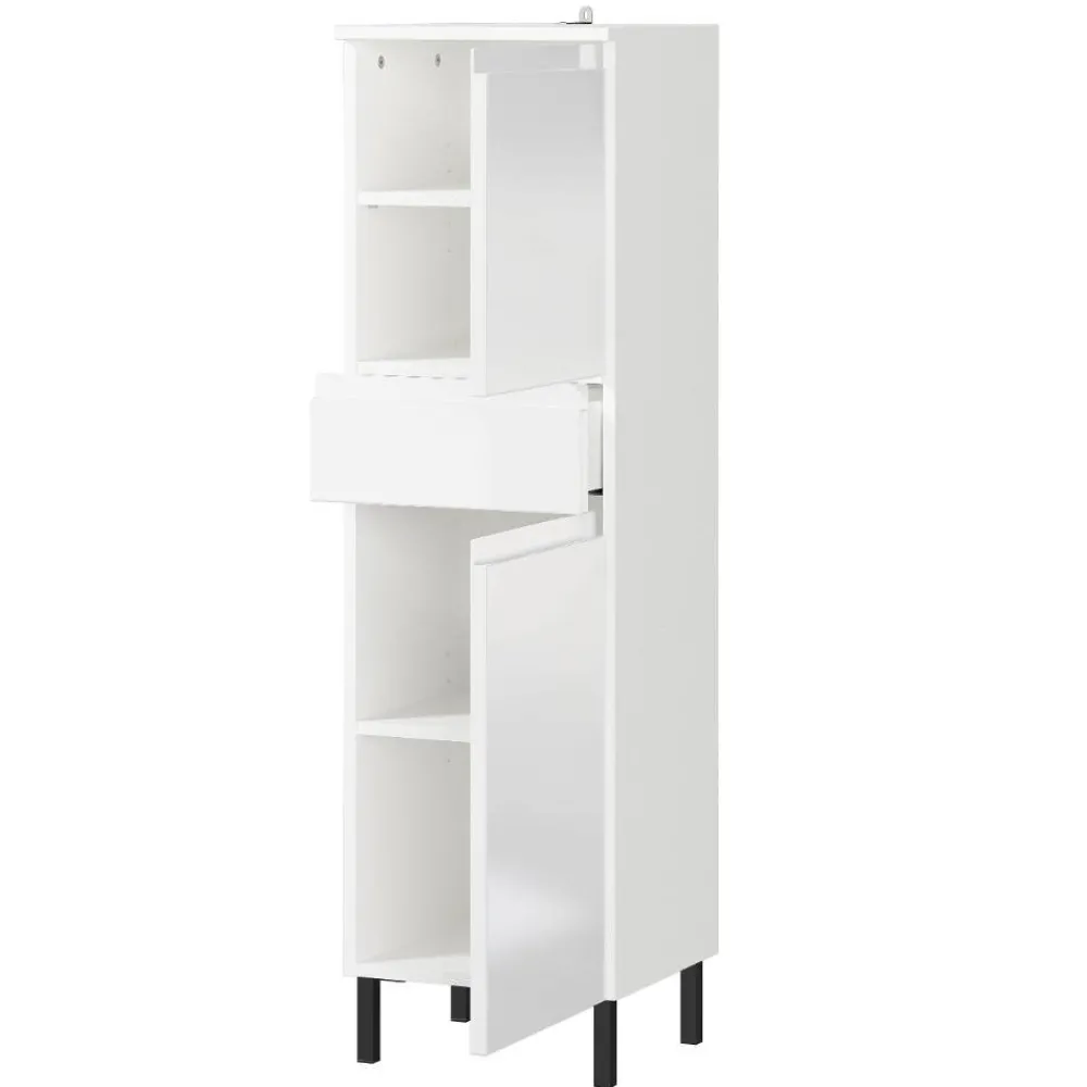 Mit dem vielseitigen Bad Midischrank „Loeesa“ schaffen Sie Ordnung und Stil zugleich. Die hochglänzenden weißen Fronten in Kombination mit dem mattweißen Korpus verleihen Ihrem Badezimmer eine frische und elegante Ausstrahlung. Dank der kompakten Maße und des durchdachten Stauraumkonzepts ist dieses Möbelstück eine ideale Ergänzung für jedes moderne Bad.