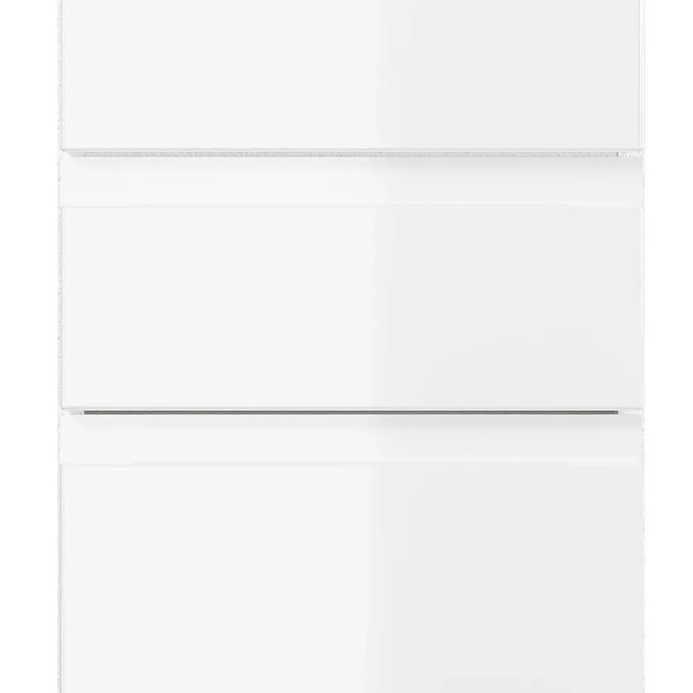 Die Fronten bestehen aus MDF-Holzwerkstoff mit tiefgezogener Folierung, wodurch eine makellose Oberfläche ohne sichtbare Übergänge entsteht. Der melaminbeschichtete Spanplatten-Korpus ist pflegeleicht und widerstandsfähig gegen Feuchtigkeit. Stoßfeste ABS-Kanten bieten zusätzlichen Schutz und sorgen für eine lange Lebensdauer.