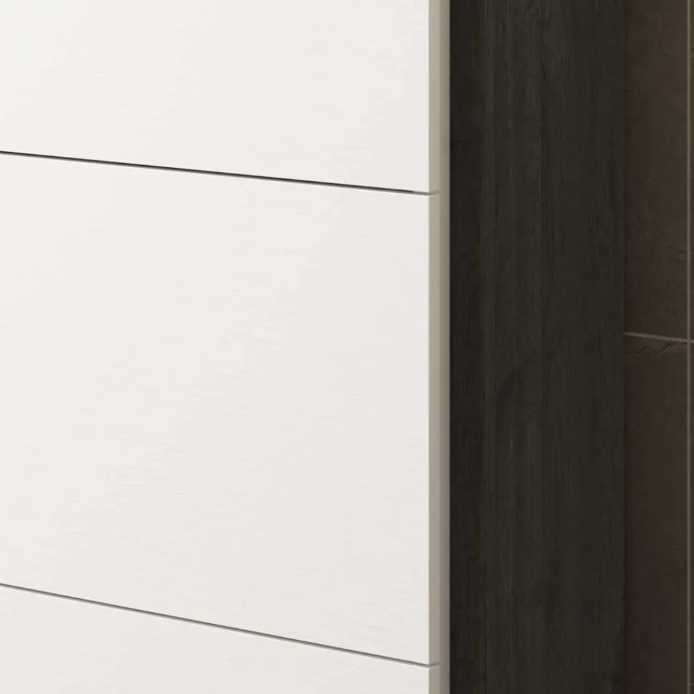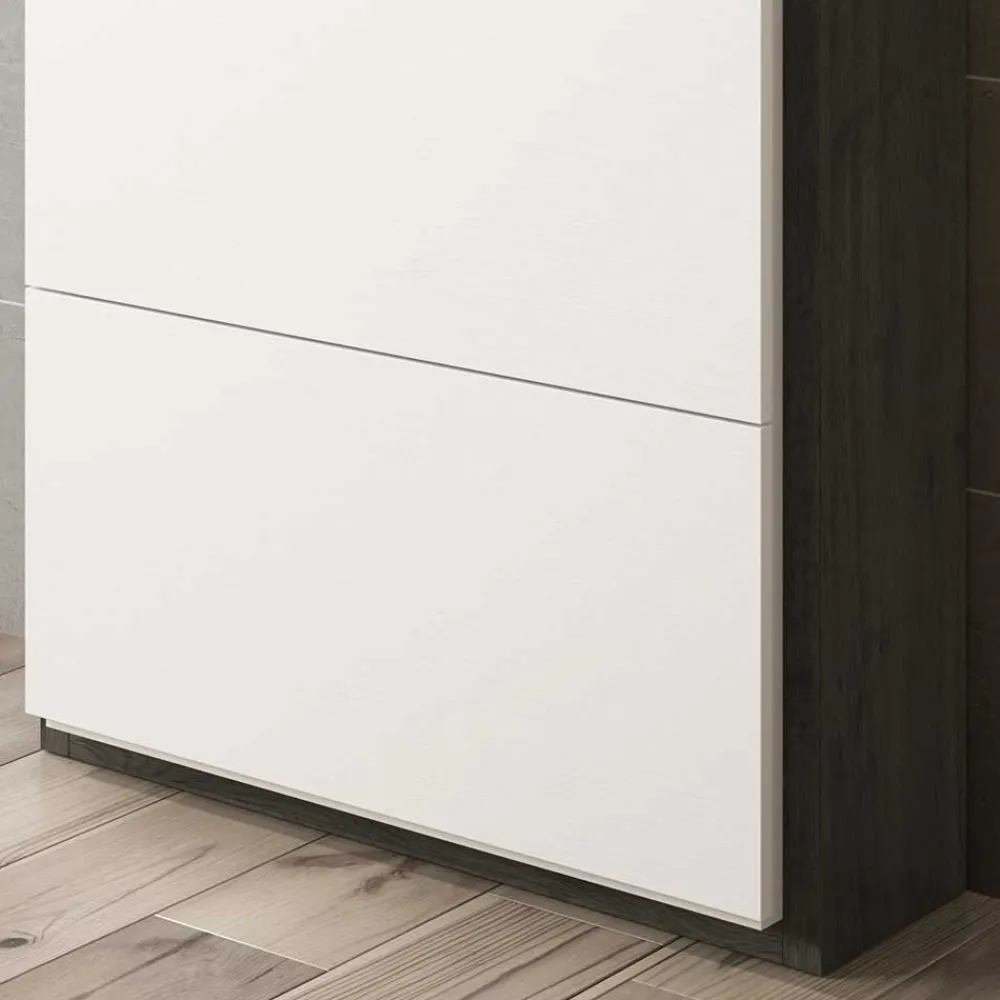 Das auffällige Zusammenspiel aus tiefem Schwarzgrau und heller weißer Holzoptik bringt Dynamik und Stil in Ihren Wohnbereich. Der zweifarbige Look wirkt modern und zeitlos zugleich – perfekt für minimalistische Interieurs, skandinavische Einrichtungen oder urbane Loft-Wohnungen. Die harmonische Farbgebung lässt sich mühelos mit anderen Möbeln kombinieren und verleiht Ihrem Eingangsbereich sofort mehr Charakter.