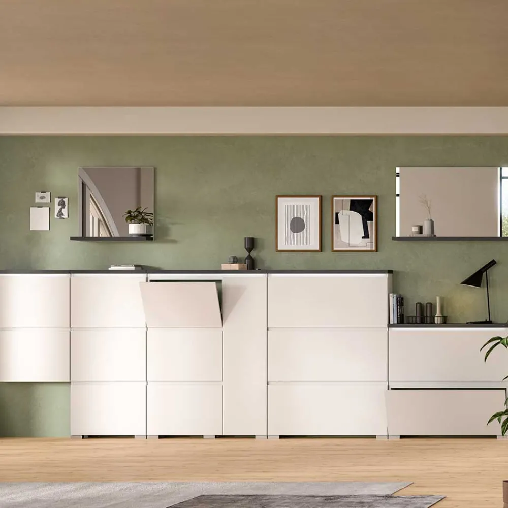 Ein modernes Zuhause verdient moderne Möbel – der Schuhschrank „Suad“ bietet Ihnen genau das. Das moderne Design dieses Möbelstücks besticht durch klare Linien, funktionale Details und eine ästhetische Farbkombination aus Weiß und Dunkelgrau. Modernes Design bedeutet hier: zeitlose Eleganz, die sich durch Minimalismus und Zweckmäßigkeit auszeichnet, und dabei jeden Raum optisch aufwertet.