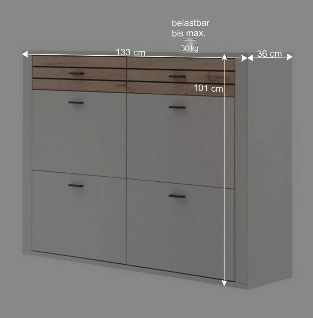 - Platzsparender Schuhschrank in Lichtgrau und Wildeichefarben