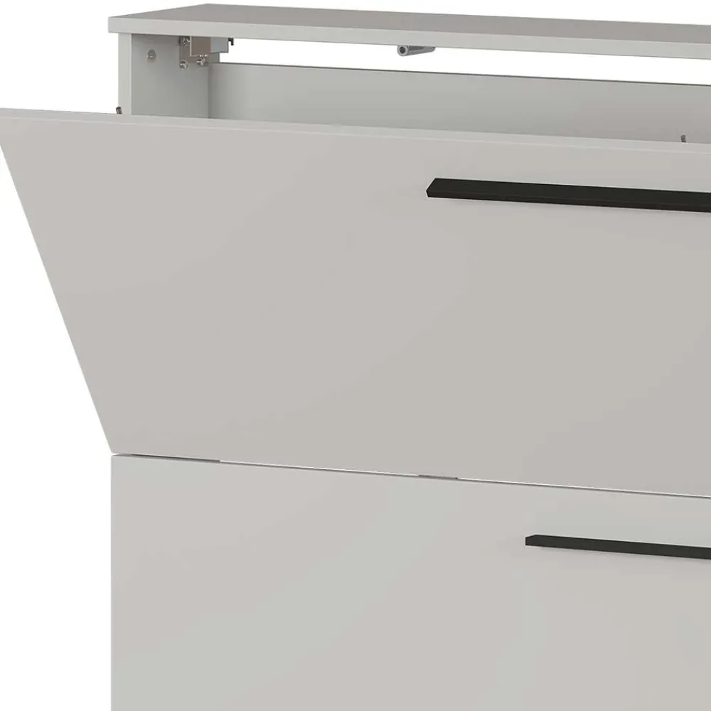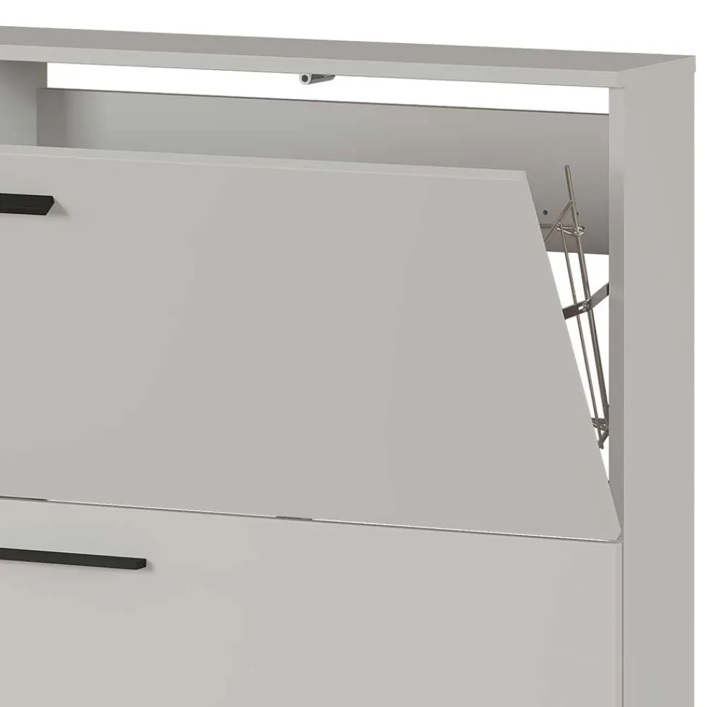 Verabschieden Sie sich von Unordnung im Eingangsbereich mit dem stilvollen Schuhschrank „Orica“. In bester deutscher Produktion gefertigt, repräsentiert dieses Möbelstück nicht nur Qualität, sondern auch modernes Design. Die melaminbeschichtete Oberfläche in Hellgrau bietet eine ansprechende Optik, die nahtlos in jedes Interieur integriert werden kann. Diese Beschichtung macht den Schrank nicht nur besonders strapazierfähig, sondern auch leicht zu reinigen – perfekt für den täglichen Gebrauch.