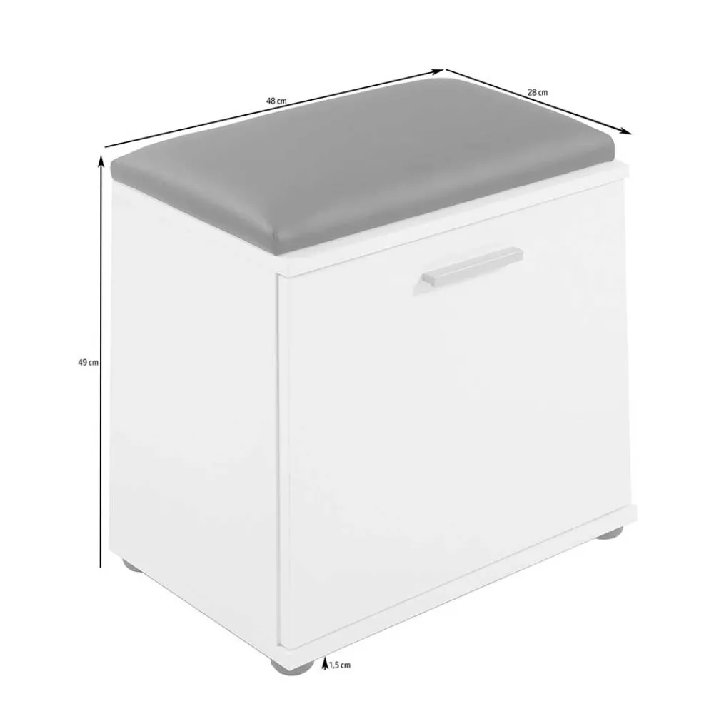 Mit einer Sitzhöhe von ca. 49 cm und einer schaumstoffgepolsterten Sitzfläche bietet die Bank einen bequemen Platz zum kurzzeitigen Sitzen. Die kompakt rechteckige Form passt optimal auch in kleinere Flure oder Ecken. Dank der Kunststoff-Bodengleiter steht die Bank stabil und schonend auf dem Boden.