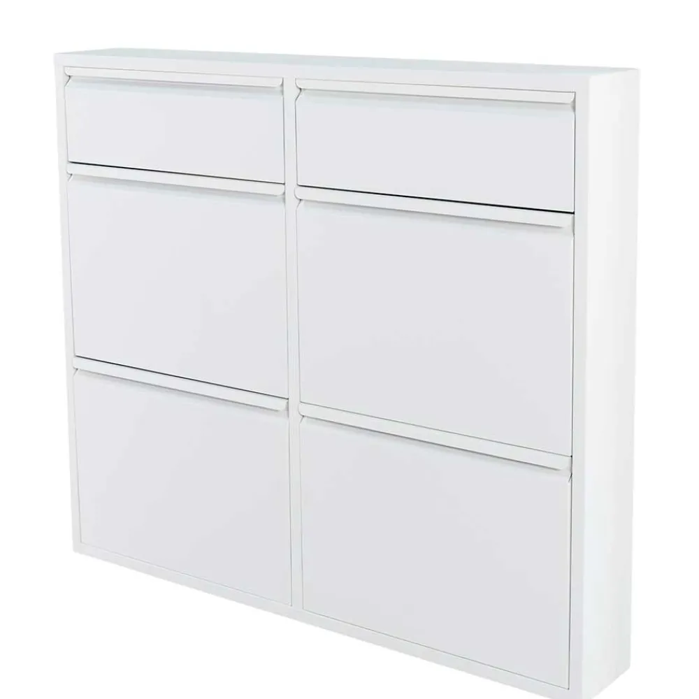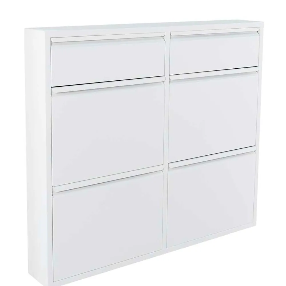 Cioara ist mehr als nur ein Schuhschrank – er ist ein stilvolles Statement für Ordnungsliebhaber mit Anspruch. Dieses formschöne Möbelstück verbindet moderne Ästhetik mit durchdachter Alltagstauglichkeit und avanciert in jedem Flur, jeder Diele oder Garderobe zum echten Hingucker. Seine elegante, klare Linienführung in frischem Weiß sorgt für ein aufgeräumtes Ambiente und fügt sich nahtlos in jede moderne Wohnumgebung ein.