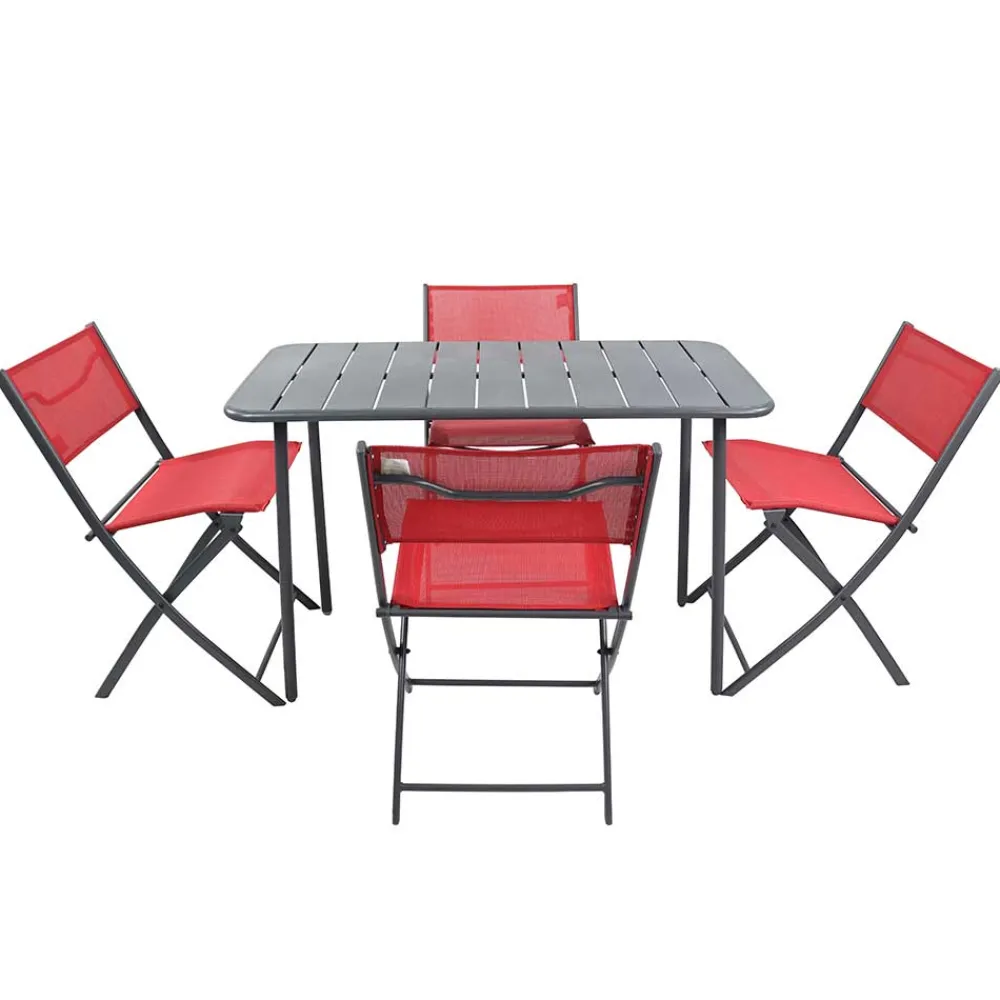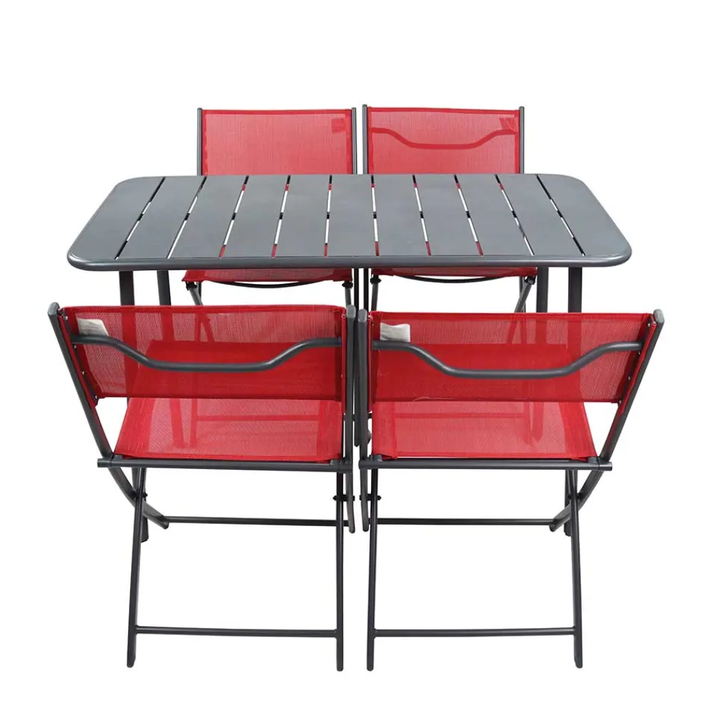 - Schickes Gartenmöbel-Set in den Farben Rot und Schwarz