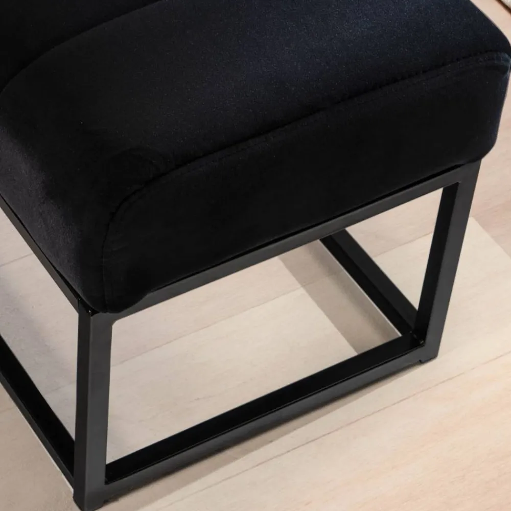 Die Bettbank überzeugt durch erstklassige Materialien, die sowohl optisch als auch haptisch begeistern. Der Bezug aus strapazierfähigem Samt (100 % Polyester) verleiht der Bank eine luxuriöse Ausstrahlung und ist gleichzeitig äußerst pflegeleicht. Für ein bequemes Sitzgefühl sorgt die komfortable Schaumstoffpolsterung, während das robuste Metallbügel-Gestell mit schwarz pulverbeschichteter Oberfläche und integrierten Bodenschonern aus Kunststoff für Stabilität und Schutz Ihres Bodens sorgt. Das gesteppt gestaltete Sitzpolster verleiht dem Design eine zusätzliche ansprechende Note.