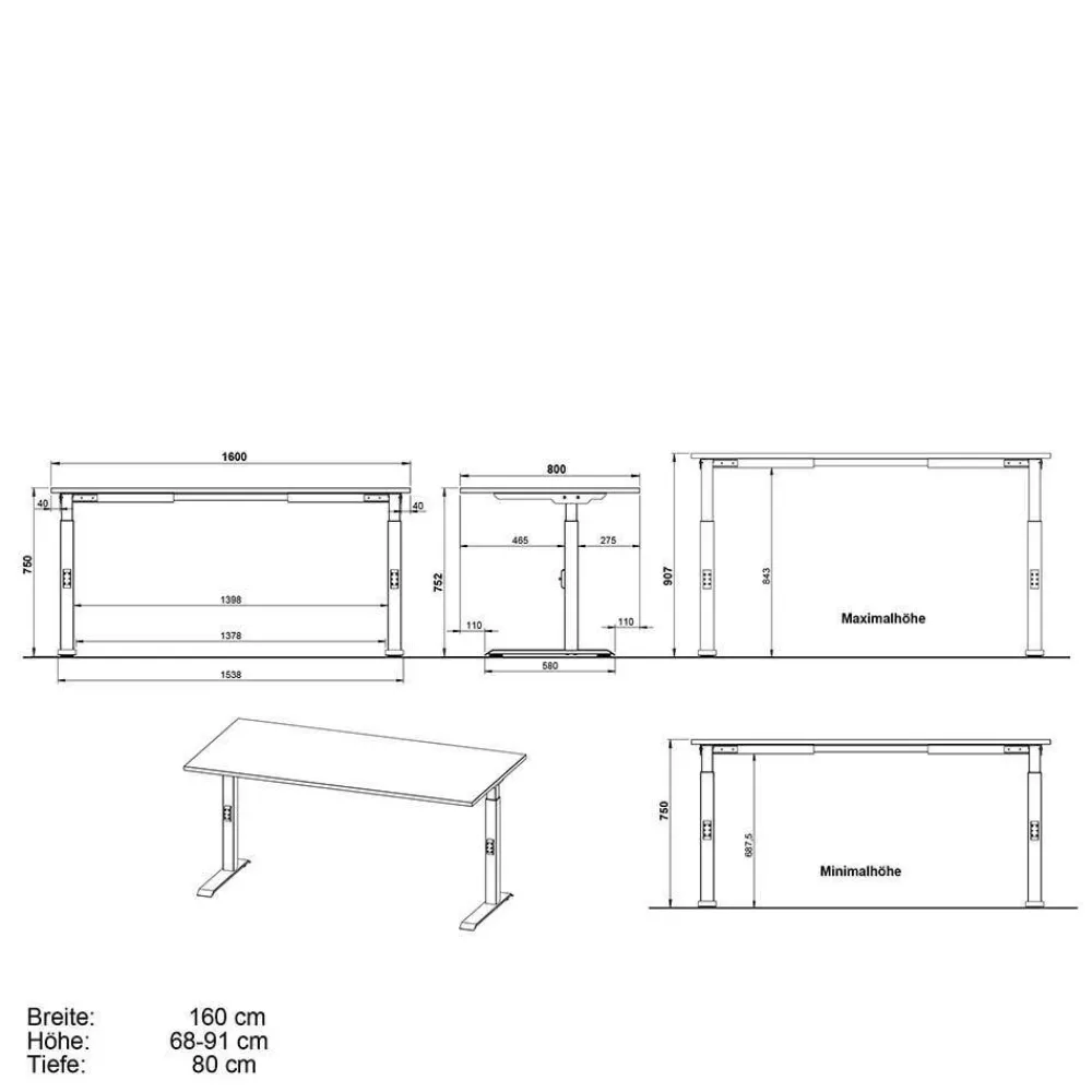 - Per Knopfdruck elektrisch höhenverstellbar von 72-120 cm