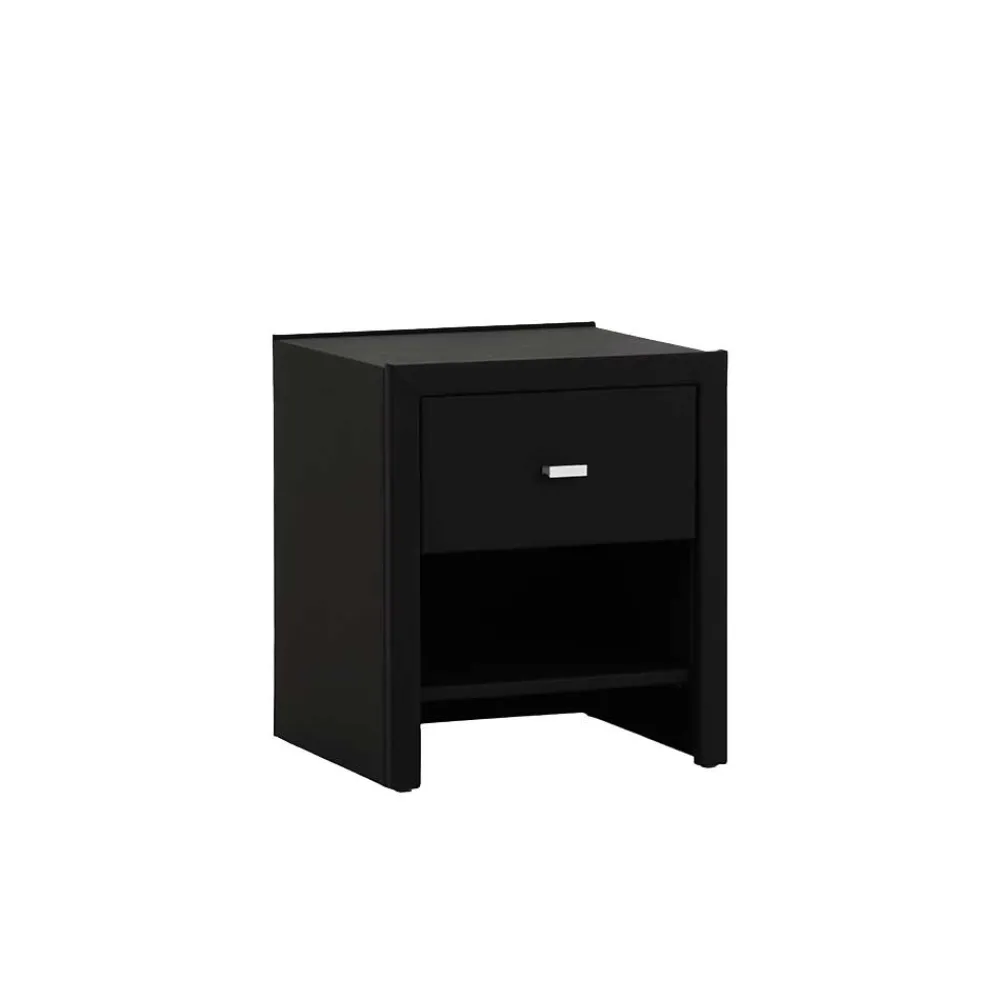 - Die gesamte Nachtkommode ist bezogen mit Struktur Webstoff (100 % Polyester) in Schwarz