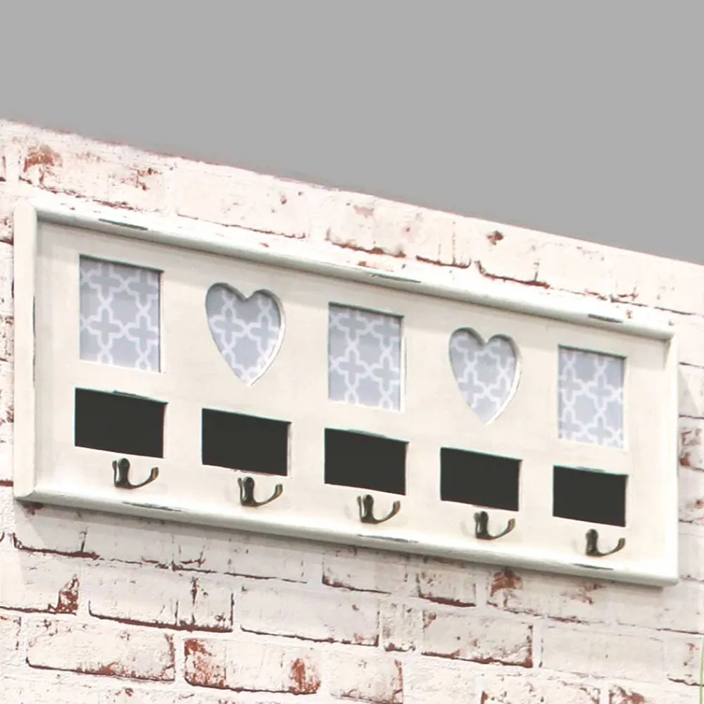 - Mit fünf eingelassenen Bilderrahmen, zwei Herzformen und drei in quadratisch