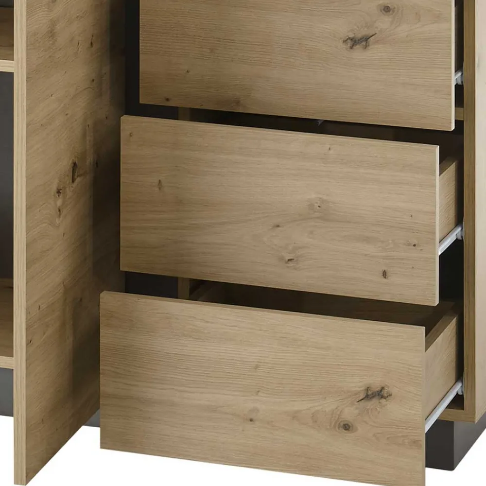 - Geräumiges Sideboard in Wildeichefarben und Dunkelgrau
