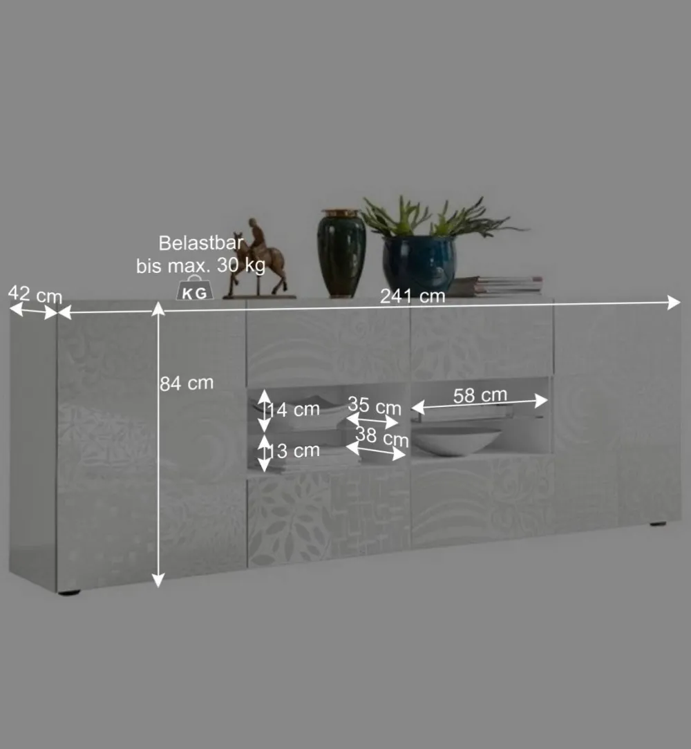 Wohnen Sideboards & Kommoden|Sideboards & Kommoden*Weißes Hochglanz Sideboard 241 cm breit – Vascaub