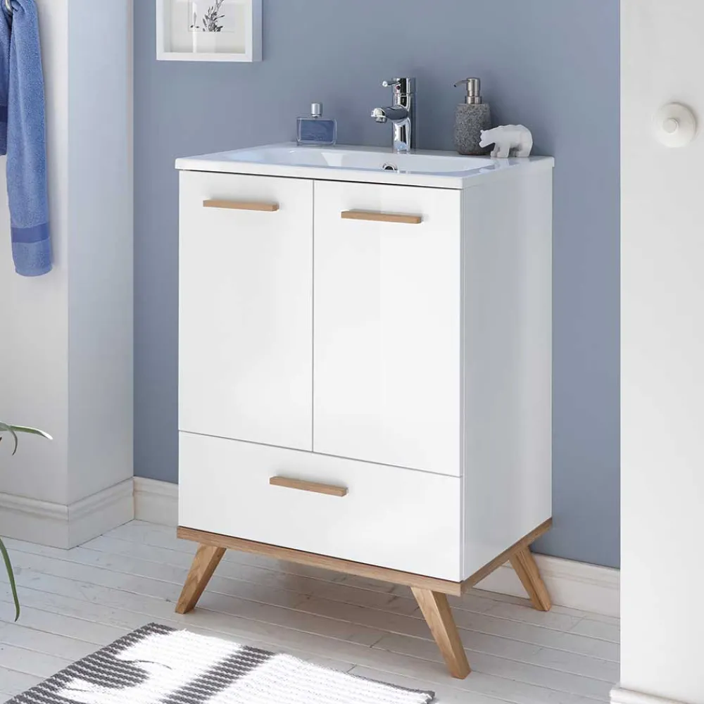 - Trendgerechter Waschtisch in Weiß und Eichefarben