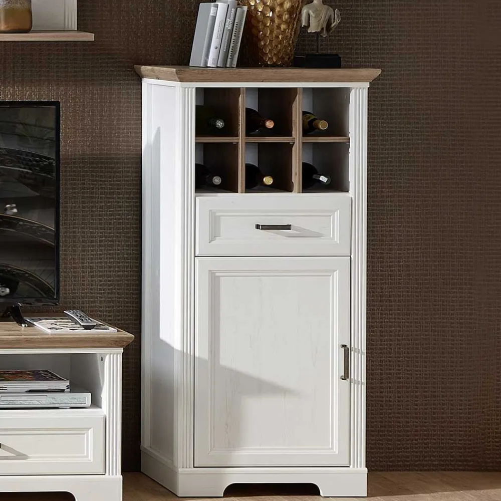 - Ansprechende Wohnwand in Pinie Weiß und Eichefarben