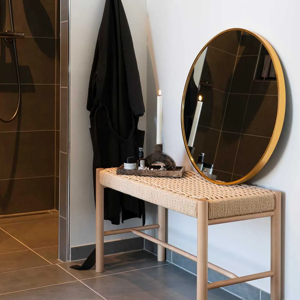 - Schmaler Rahmen aus messingfarbigem Aluminium