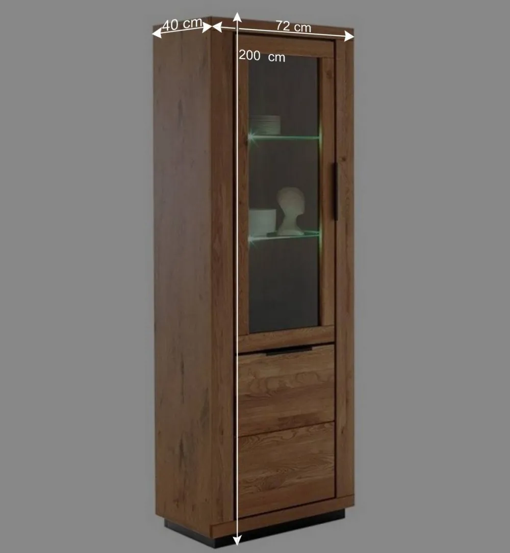 Mit ihrer warmen Wildeichefarbe und den kontrastierenden schwarzen Akzenten bringt die Wohnwand „Vlacoma“ ein angenehmes und gleichzeitig edles Ambiente in Ihr Zuhause. Die natürlich geölte Holzoberfläche mit durchgehenden Lamellen verleiht den Möbelstücken eine besonders hochwertige Optik und Haptik. Die Kombination aus Massivholz, MDF in Holzoptik foliert und Klarglas sorgt nicht nur für Stabilität und Langlebigkeit, sondern auch für eine ansprechende ästhetische Wirkung. Massivholz überzeugt durch seine Robustheit und natürliche Maserung, während MDF als Trägermaterial für die Holzoptik-Folie eine gleichmäßige Struktur bietet. Klarglas-Elemente runden das moderne Design ab und schaffen zusätzliche Leichtigkeit.