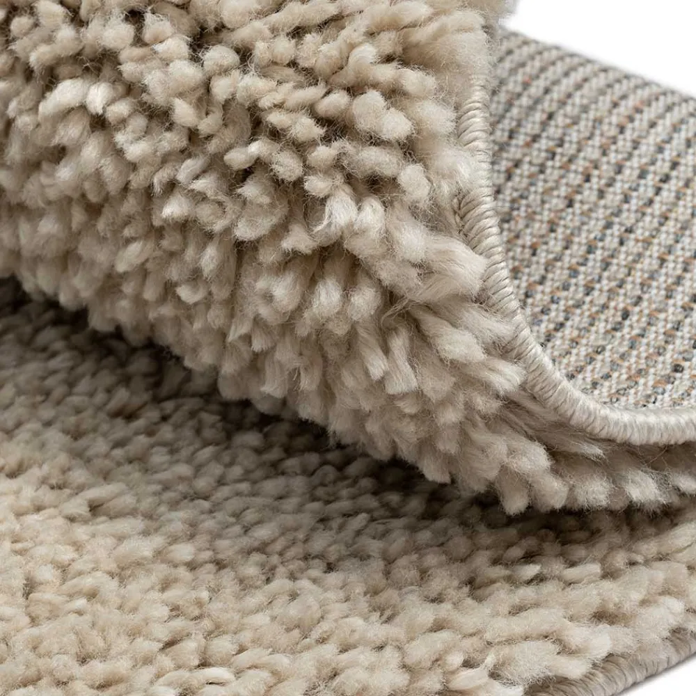 Der Hochflor aus 100 % Polypropylen ist mit einer Florhöhe von ca. 3,7 bis 4 cm angenehm weich und voluminös. Typisch für Shaggy-Teppiche ist die lockere, flauschige Struktur – sie vermittelt Wärme und Gemütlichkeit bei gleichzeitig modernem Erscheinungsbild.