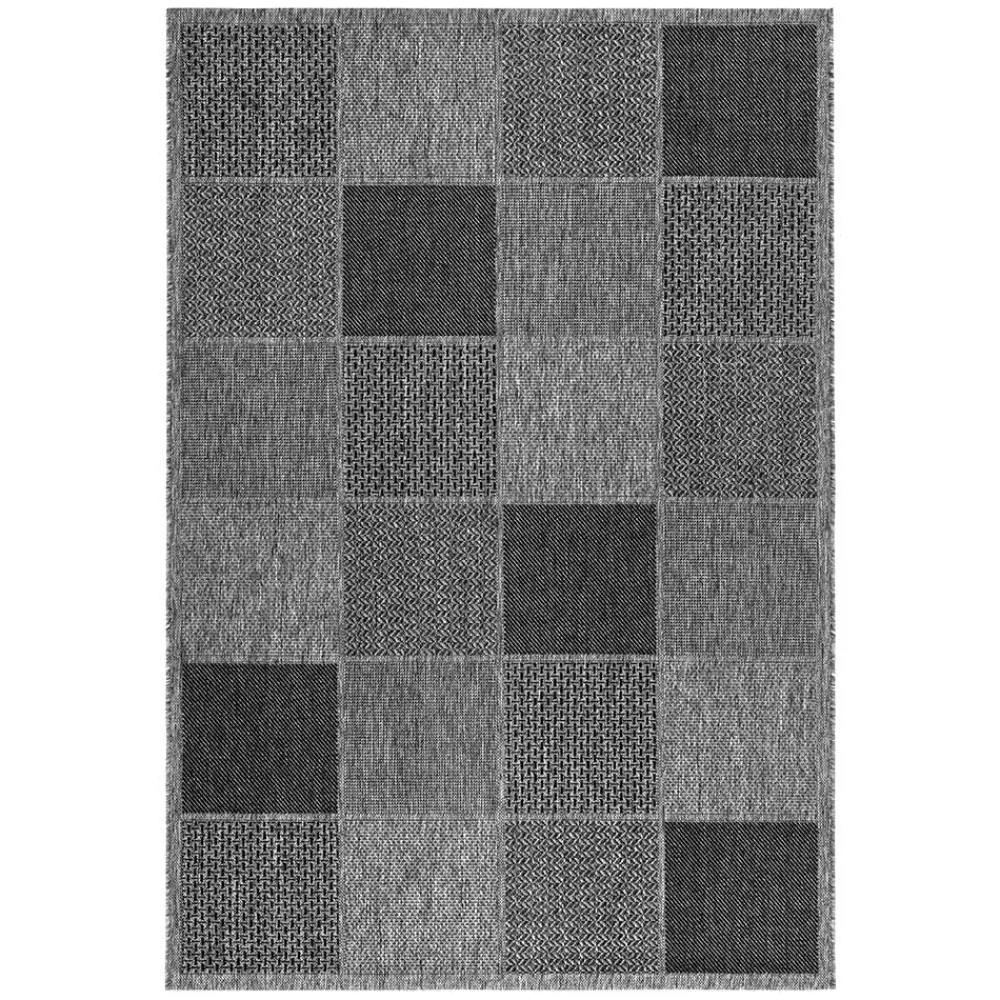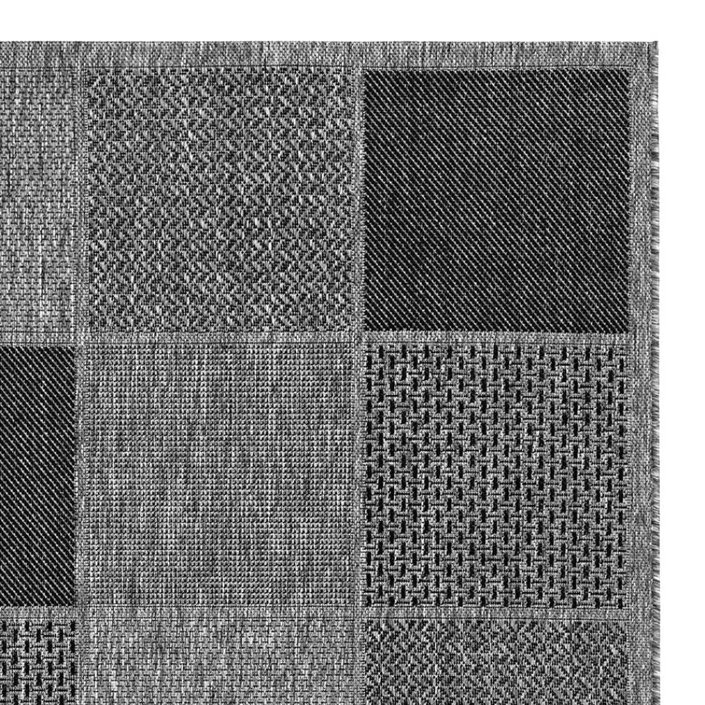 - Quadrate in unterschiedlichen Grautönen setzen den Teppich gekonnt in Szene