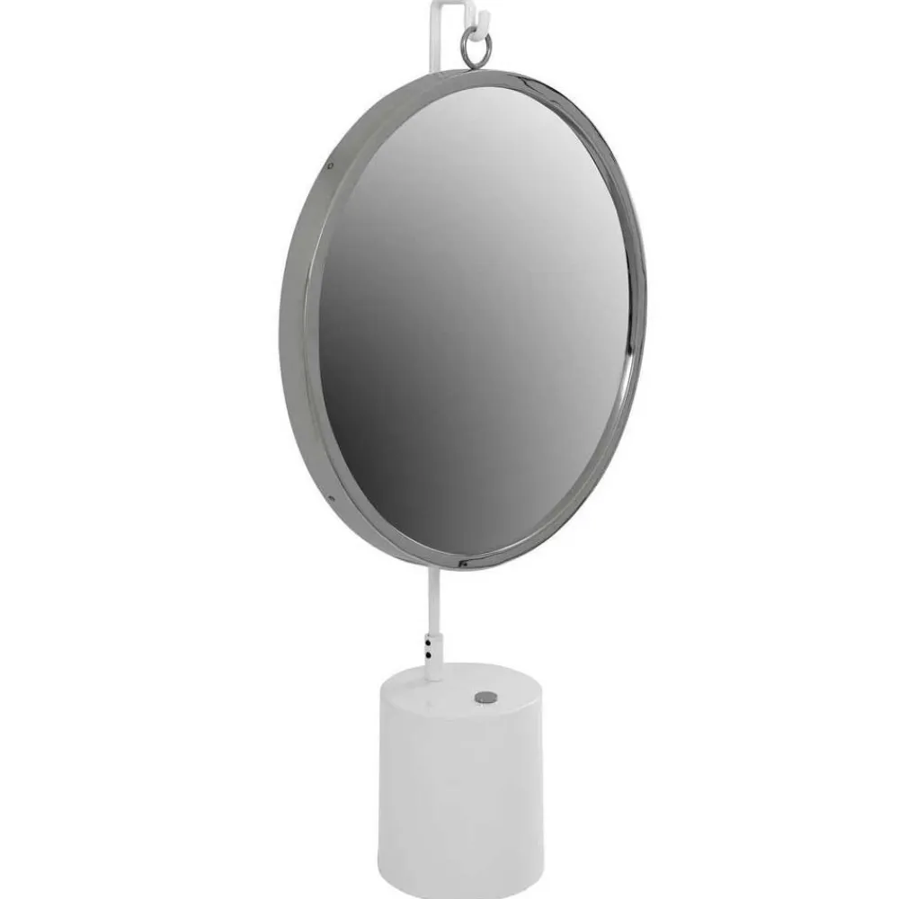 Der „Cavan“-Spiegel ist aus hochwertigem Spiegelglas, MDF und Metall gefertigt. Der silberfarbene Metallrahmen umschließt die runde Spiegelfläche und verleiht dem Spiegel seine edle Ausstrahlung. Der weiße Sockel aus MDF sorgt für die nötige Stabilität und fügt sich perfekt in das Gesamtbild ein. Die pflegeleichten Oberflächen ermöglichen eine einfache Reinigung, sodass der Spiegel auch bei täglichem Gebrauch stets in seinem vollen Glanz erstrahlt.