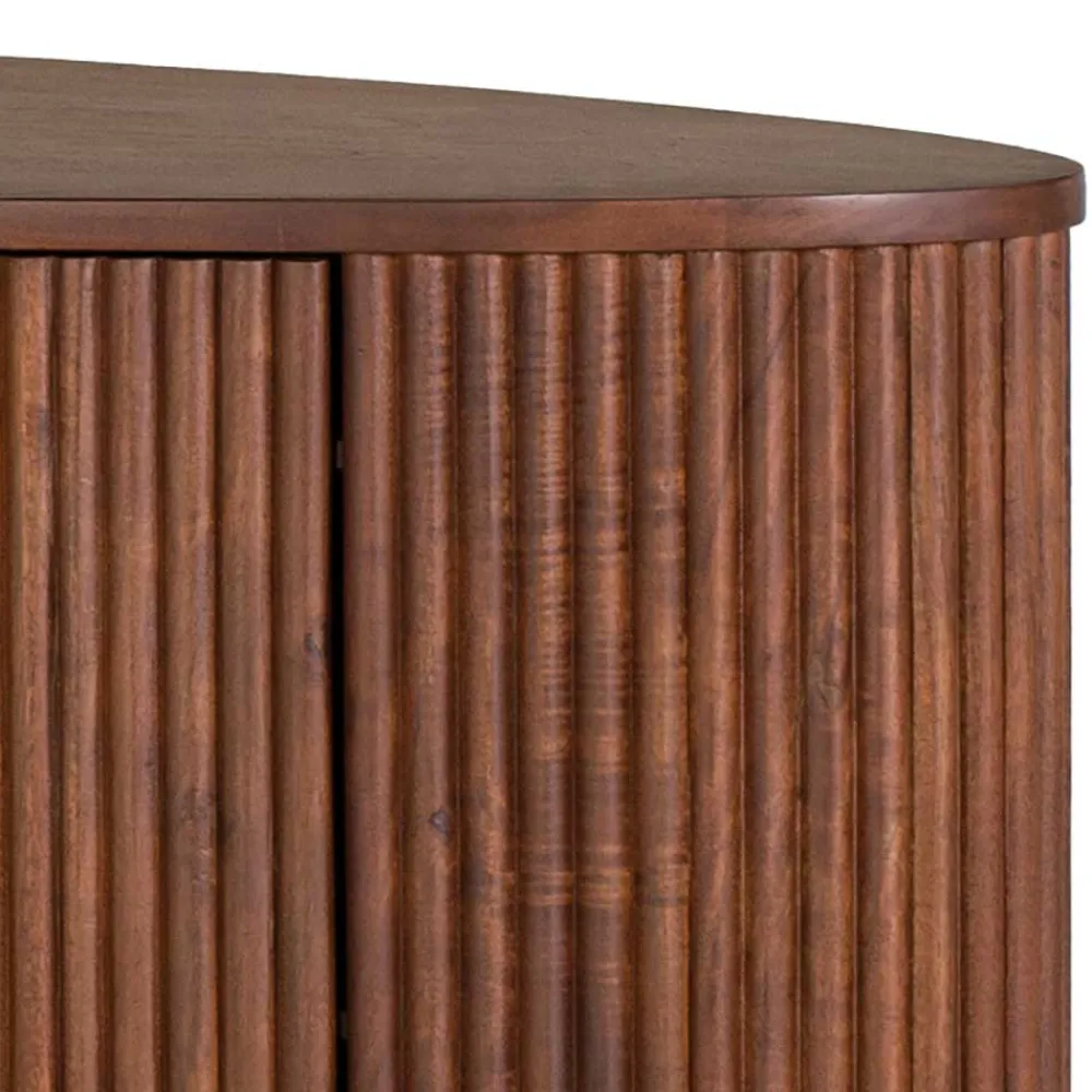 Mit seinem markanten Design wird das ovale Retro TV Lowboard „Chalil“ schnell zum Highlight in Ihrem Wohnzimmer. Die Kombination aus Walnussbraun und Schwarz verleiht dem Möbelstück einen eleganten, gleichzeitig aber auch gemütlichen Charme, der perfekt zu verschiedensten Einrichtungsstilen passt. Die ansprechende ovale Form sorgt für einen modernen Look, der dennoch von der Nostalgie vergangener Zeiten inspiriert ist. Egal, ob vor dem Fernseher oder als dekorativer Stauraum – „Chalil“ ist ein Möbelstück, das in keinem Raum fehlen sollte.