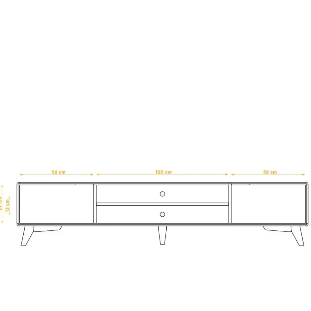 Das TV-Lowboard „Diesta“ überzeugt nicht nur durch sein Design, sondern auch durch seine hohe Standfestigkeit. Das schräg konstruierte Vierfußgestell, ergänzt durch einen zusätzlichen Stützfuß, sorgt für einen stabilen und sicheren Stand.