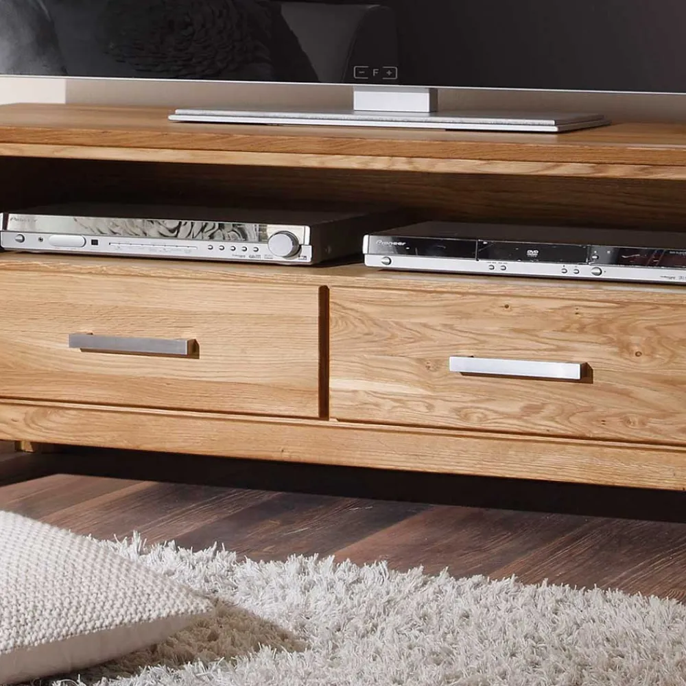 Die Oberplatte, die Schubkästen und der Rahmen der Seiten bestehen aus massivem Wildeichenholz. Diese Wahl des Materials bringt nicht nur eine zeitlose Schönheit in Ihr Wohnzimmer, sondern verleiht auch eine unvergleichliche Haltbarkeit. Die markante Maserung und die warmen Farbtöne der Wildeiche verleihen dem Lowboard eine natürliche, beruhigende Ausstrahlung.