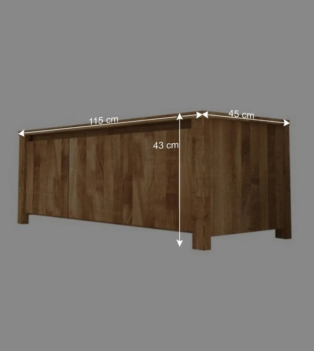 Mit einer Breite von 115 cm, einer Höhe von 43 cm und einer Tiefe von 45 cm bietet das TV-Lowboard ausreichend Platz für Ihren Fernseher und Mediengeräte. Dank seiner großzügigen Aufbewahrungsmöglichkeiten haben Sie alles, was Sie für Ihr Entertainment benötigen, griffbereit.