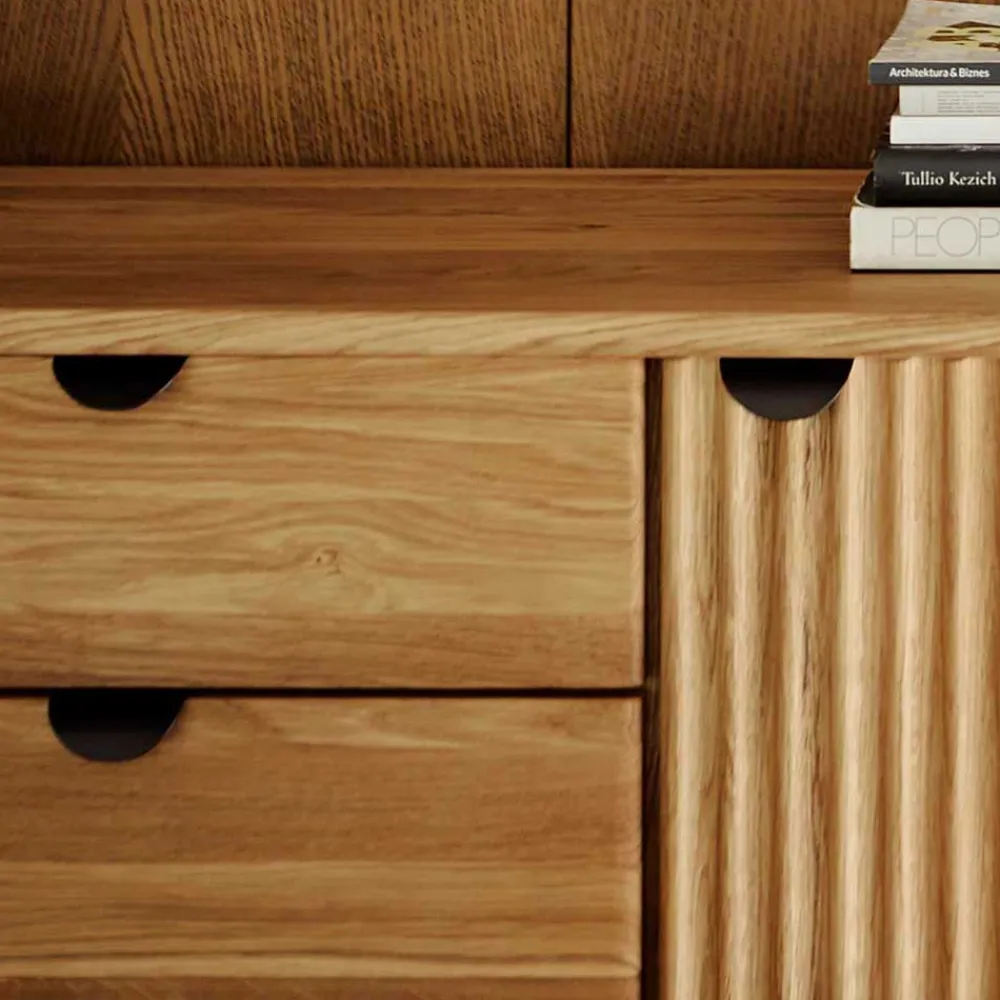Die Holzoberfläche ist natürlich geölt, was neben dem ästhetischen Vorteil der Betonung der natürlichen Schönheit des Holzes auch praktische Vorteile bietet. Öl dringt tief in das Holz ein und bietet Schutz vor Feuchtigkeit und Schmutz, wodurch die Langlebigkeit des Möbelstücks sichergestellt wird.