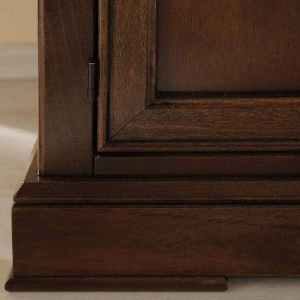 Die „Istefanio“ TV-Kommode beeindruckt mit ihrer tiefen, warmen walnussfarbenen Antikoptik. Die kunstvolle handwerkliche Verarbeitung, kombiniert mit einem klassisch-mondänen Design, macht dieses Möbelstück zu einem stilvollen Mittelpunkt in jedem Wohnzimmer.