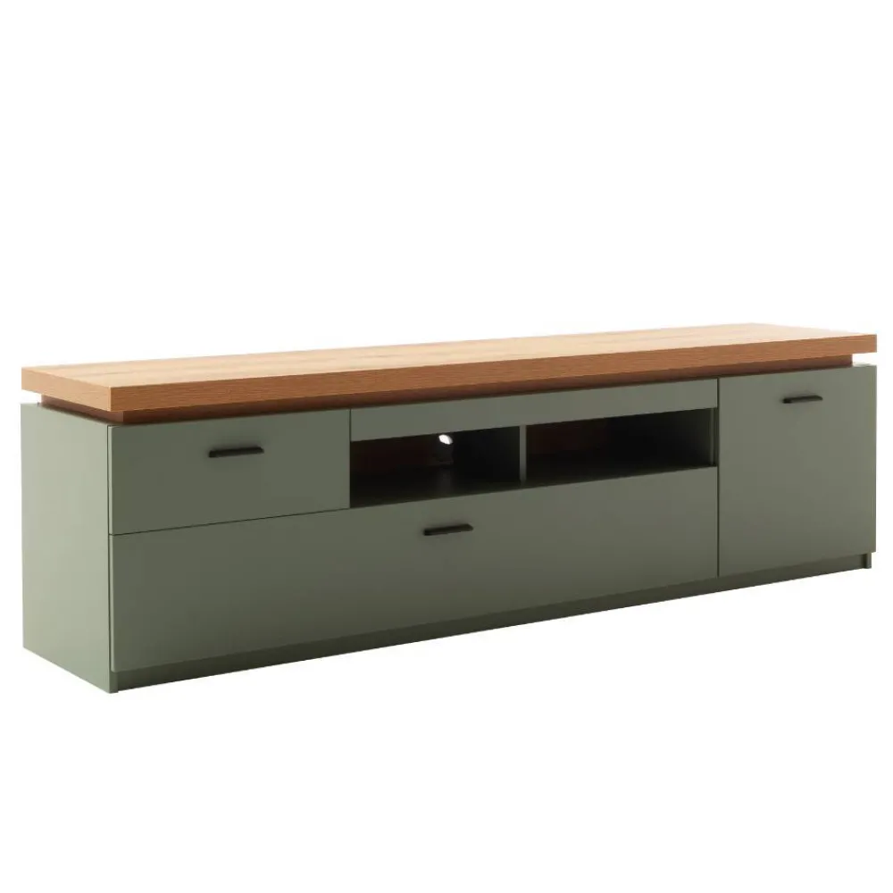 - Großzügiges TV Board in Graugrün und Eichefarben