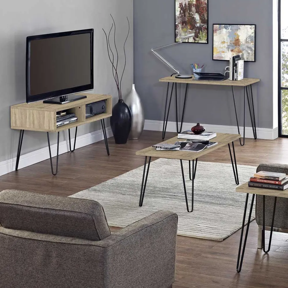 Die schwarzen Metallfüße unterstreichen das moderne Design des TV Regals „Esberg“ und sorgen für einen stabilen Stand. Diese Kombination aus Holz und Metall fügt sich nicht nur harmonisch in Ihr Wohnzimmer ein, sondern setzt auch stilvolle Akzente.