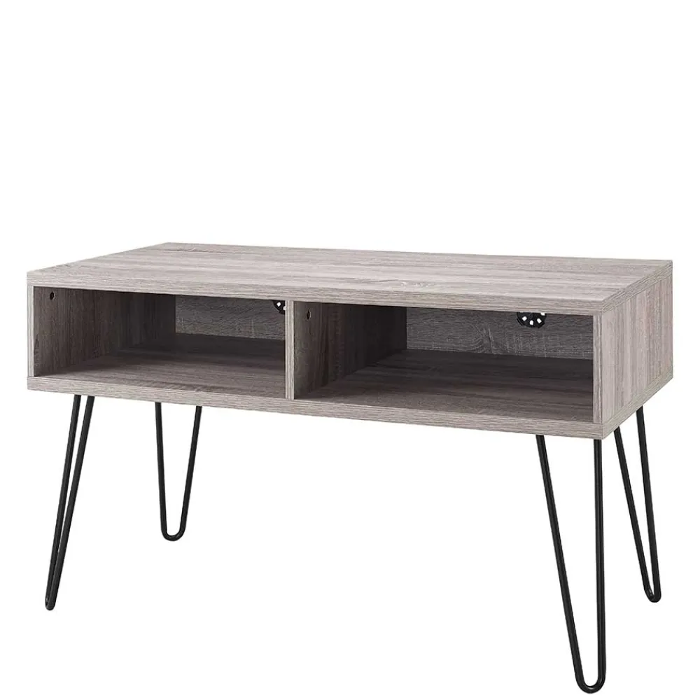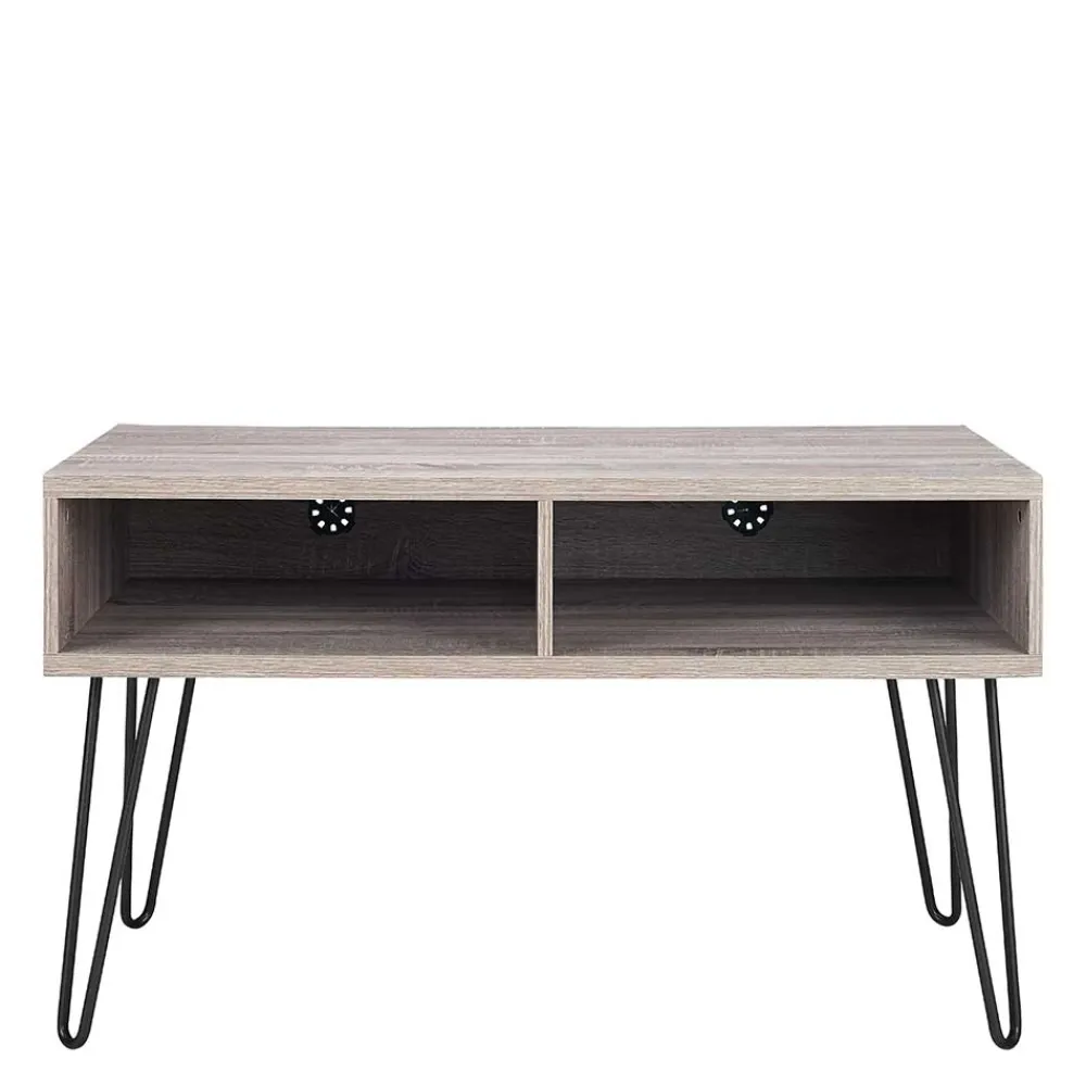 Die schwarzen Metallbeine im angesagten Hairpin Design (Haarnadel Look) verleihen dem TV Tisch „Hollabrunn“ eine gewisse Leichtigkeit und sorgen für einen stabilen Stand. Diese Kombination aus Holz und Metall setzt moderne Akzente in Ihrem Wohnbereich.