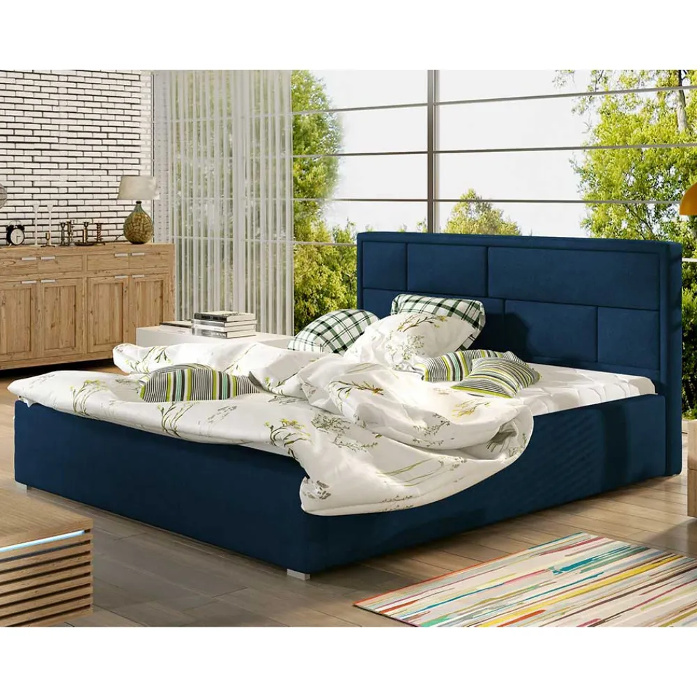 Das Velours Doppelbett „Liony“ bringt mit seinem dunkelblauen Bezug eine elegante und zugleich lebendige Farbgebung ins Schlafzimmer. Der angenehme Ton wirkt frisch, modern und lässt sich vielseitig kombinieren – mit hellen Holzarten, neutralem Weiß oder goldfarbenen Akzenten. Eine Farbwahl, die Ruhe ausstrahlt, ohne an Tiefe zu verlieren – ideal für ein stilvolles Ambiente mit persönlicher Note.