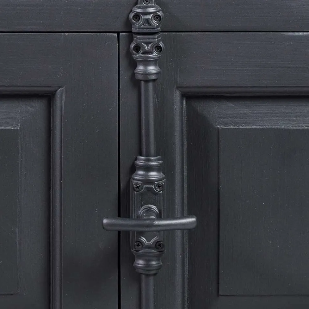 Mit einer Breite von 100 cm, einer Höhe von 70 cm und einer Tiefe von 40 cm bietet das TV Board „Niovan“ ausreichend Platz für Ihr TV-Zubehör. Es verfügt über zwei Türen mit stilvollen Metallbeschlägen und einer dekorativen Kassettenoptik. Hinter den Türen befindet sich ein geräumiges Staufach, in dem Sie Ihre Gegenstände ordentlich verstauen können. Ein besonderes Detail ist die markante Schlossstange mit einem Knebel zum Drehen, die dem TV Board einen nostalgischen Charme verleiht. Zusätzlich gibt es ein offenes Gerätefach mit den Maßen von ca. 95x15x37 cm, ideal für Ihre Mediengeräte.