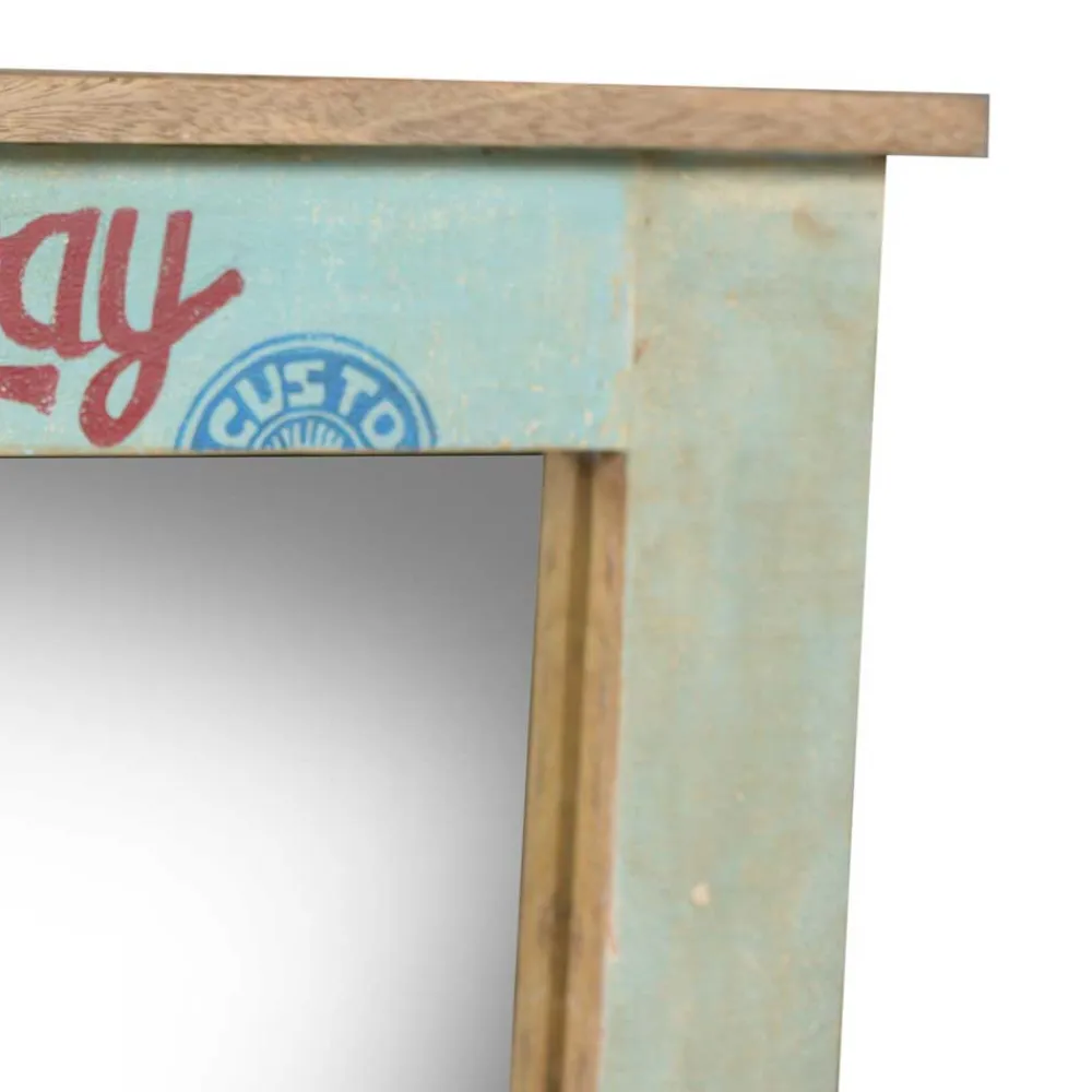 Einzigartige Optik im Vintage-Stil Elegant und voller Charakter, bringt der Dielenspiegel „Creek“ den unverwechselbaren Vintage-Look direkt in Ihr Zuhause. Vintage-Möbel sind bekannt für ihre Fähigkeit, Geschichten aus vergangenen Zeiten zu erzählen, was Ihrem Wohnraum eine warme, einladende Atmosphäre verleiht. Dieser Spiegel, der mit seiner individuell bunten Lackierung besticht, ist nicht nur ein funktionales Wohnaccessoire, sondern auch ein echter Blickfang.