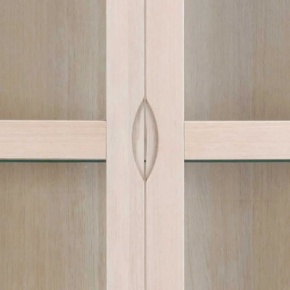 Die Vitrine „Pessoa I“ wird aus sorgfältig ausgewählten Materialien gefertigt, um Ihnen ein Möbelstück von höchster Qualität zu bieten. Der Korpus ist aus MDF (Mitteldichte Holzfaserplatte) gefertigt, was für Stabilität und Langlebigkeit sorgt. Die Oberflächen des Korpus und der Front sind mit echtem Eichenholzfurnier in White Wash Optik behandelt. Das bedeutet, dass die natürliche Schönheit des Holzes bewahrt bleibt und gleichzeitig eine leichte, helle Optik entsteht. Dieser Prozess wird mit Hartwachsöl abgerundet, um die Oberfläche zu schützen und ihr einen sanften Glanz zu verleihen.