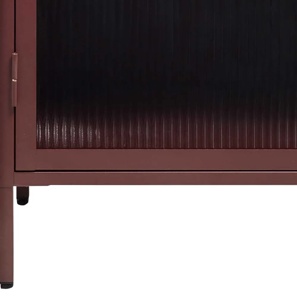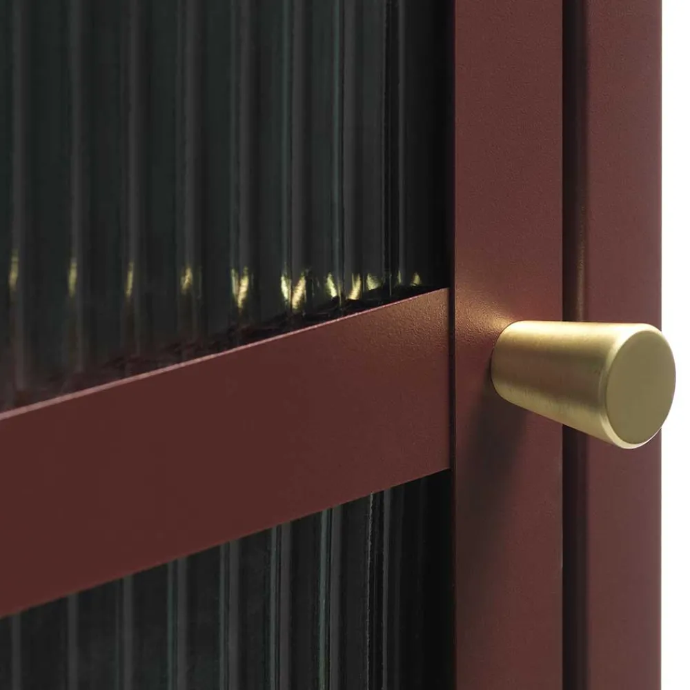Unsere Vitrine „Enno“ wird aus hochwertigem Stahl und widerstandsfähigem Sicherheitsglas gefertigt. Die Metalloberflächen sind in einem ansprechenden Dunkelrot pulverbeschichtet, was nicht nur für eine beeindruckende Optik sorgt, sondern auch die Langlebigkeit des Materials gewährleistet. Dieses Möbelstück ist ein echtes Statement von dauerhafter Qualität und Stil.