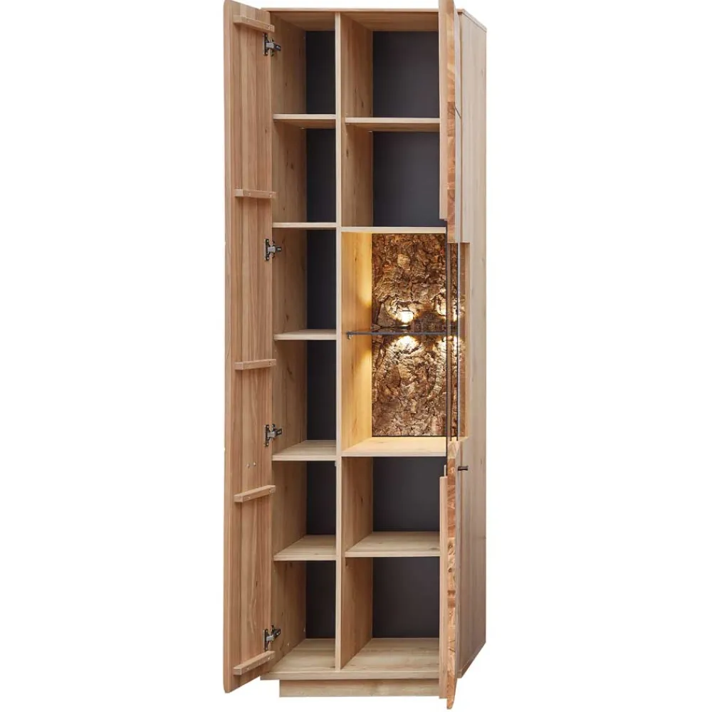 - Aparte Vitrine in Esche- und Wildeichefarben