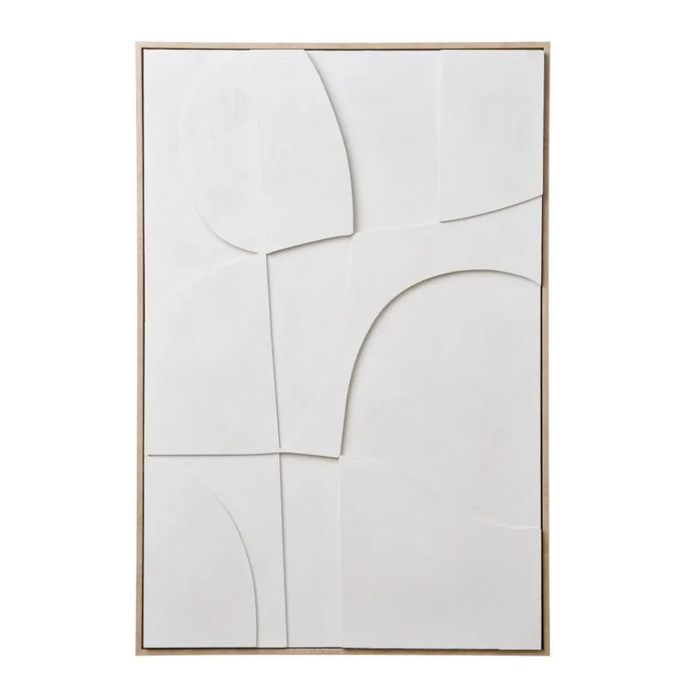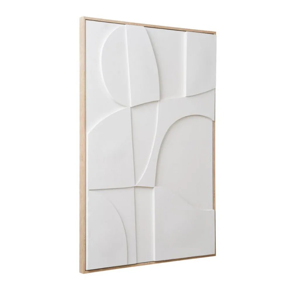 Die abstrakten, reliefartigen Formen – von Bögen bis zu Rechtecken – erzeugen ein spannendes Spiel aus Licht und Schatten. Die monochrome Farbgebung lenkt den Fokus auf die Struktur und macht „Actino“ zu einem vielseitig kombinierbaren Kunstobjekt. Mit einer Größe von 60 x 90 cm und einer Tiefe von 3 cm eignet sich das Bild hervorragend für mittlere Wandflächen und bringt dort Ruhe und Klarheit ins Raumkonzept.